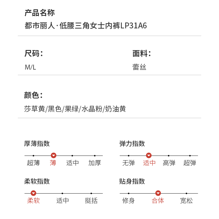 都市丽人薄透丝滑系列蕾丝低腰三角内裤LP31A6