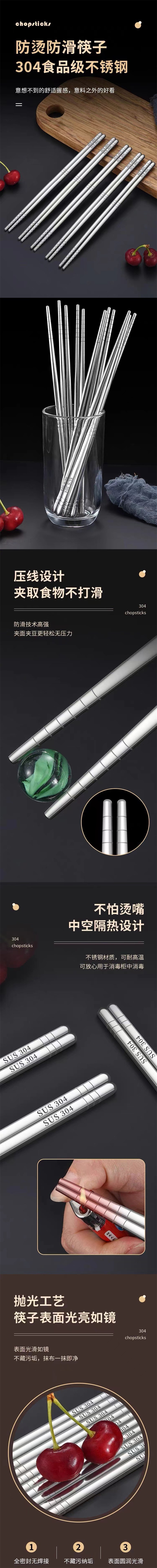 304不锈钢筷子 5双装 金属银铁快子家用防滑抗菌防霉韩式高档23cm