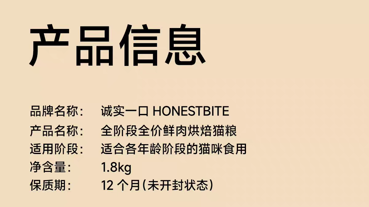 诚实一口 烘焙猫粮 小金袋 1.8kg/包