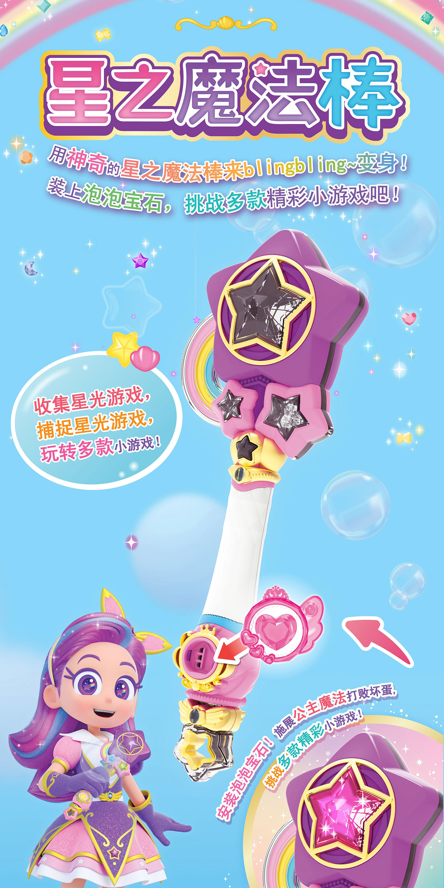 mimiworld我的同学是美人鱼动画同款星之魔法棒便携游戏机公主变身女孩玩具