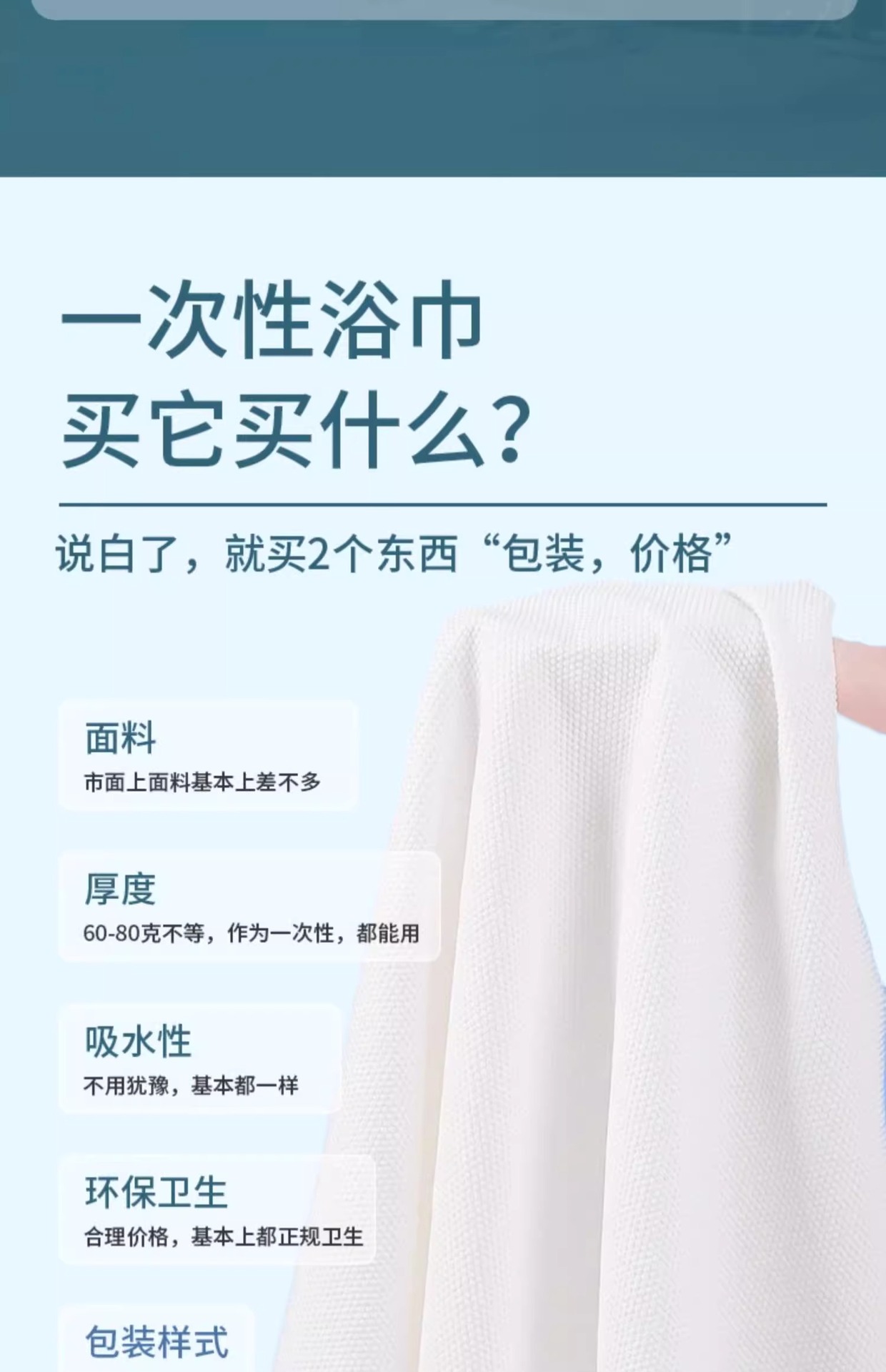 旅行酒店宾馆旅社专用一次性超大压缩吸水毛巾浴巾独立真空包装