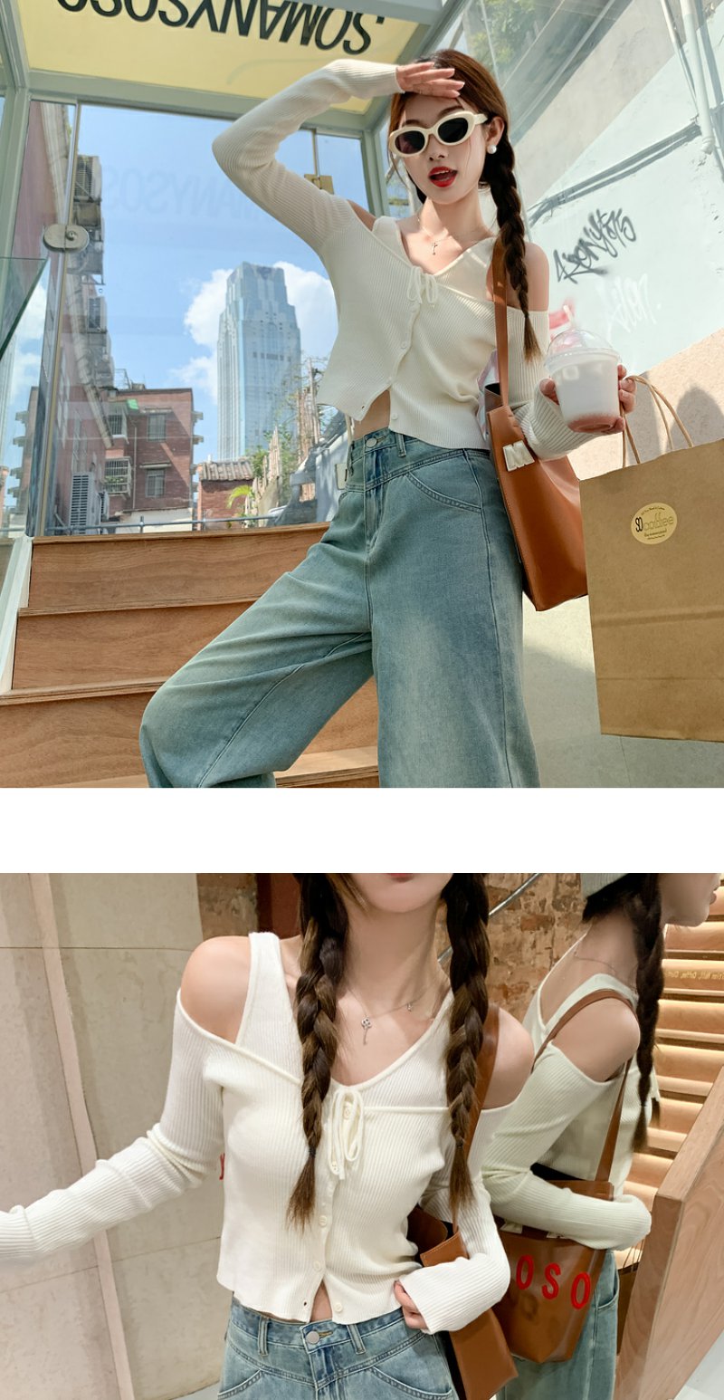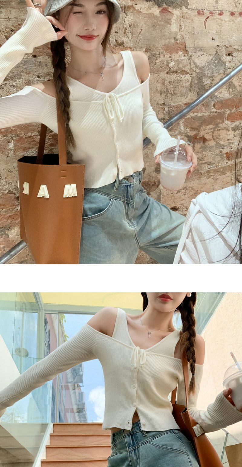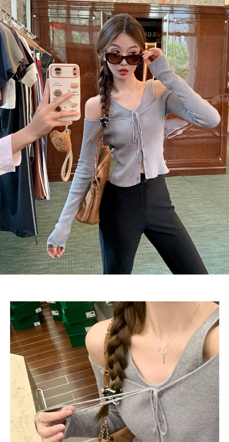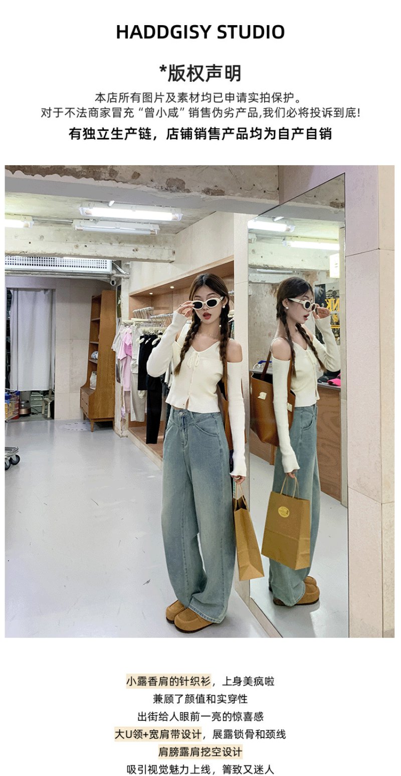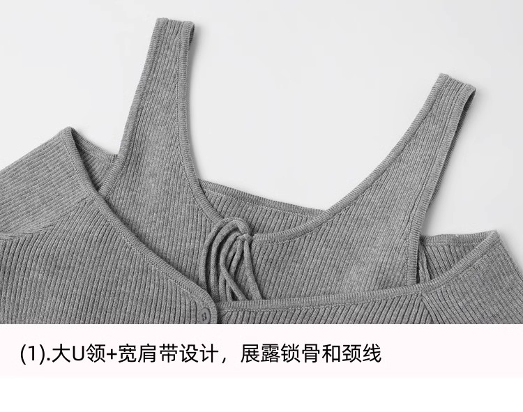<曾小咸推荐>新品现货秒杀!卖完下架不再补 !微信粉丝打折价!!2色假两件露肩针织衫 日常159.99 立减90 秒杀69.99!!