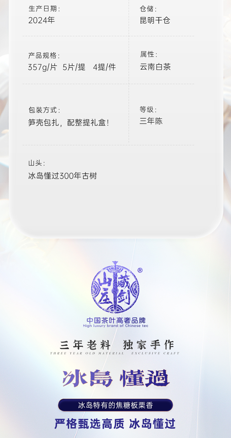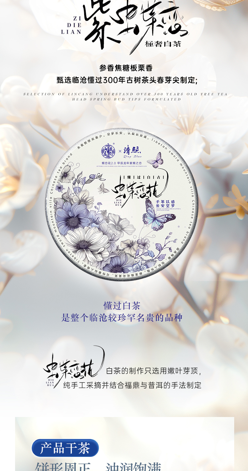 【藏剑山庄】清照系列限定品!蝶恋花第二代重磅上市!临沧懂过300年古树老白茶!357克/片 !5片/提!一提赠一片!!!