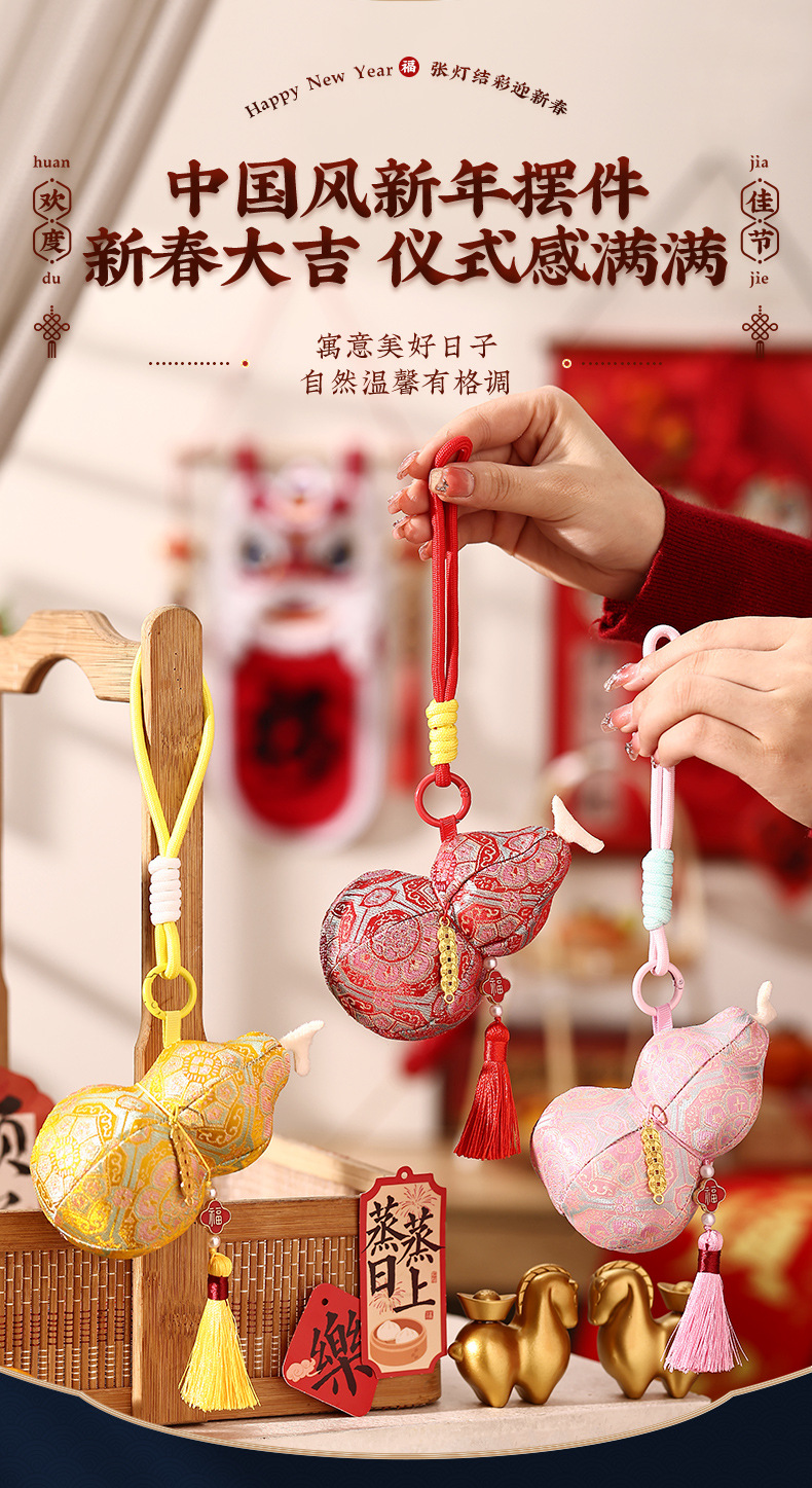 2026马年过年装饰挂件春节年货葫芦挂饰新年门上喜庆创意氛围布置2026马年新年装饰品福字车载挂件春节过年书包钥匙扣吉祥葫芦挂饰