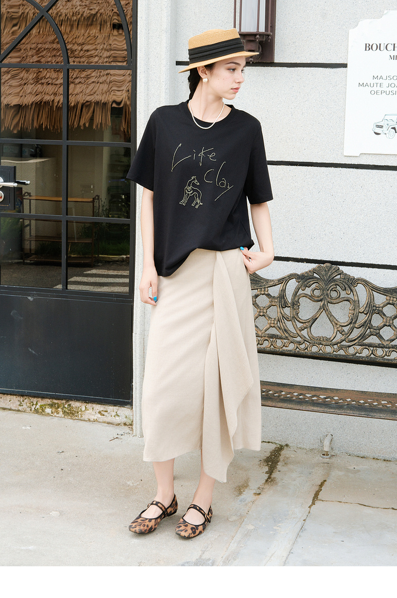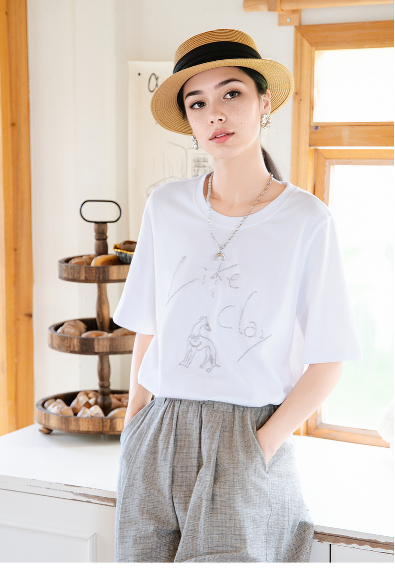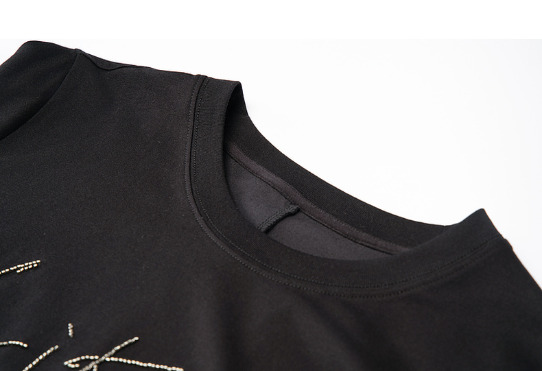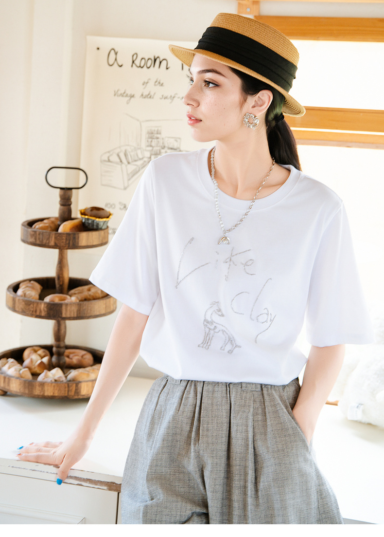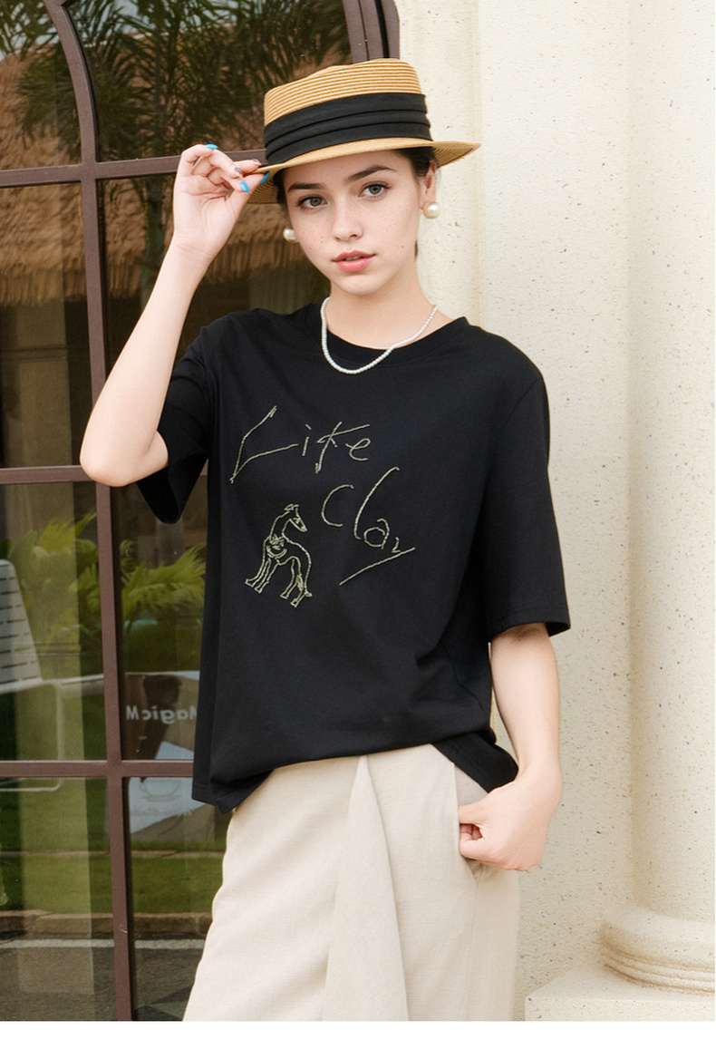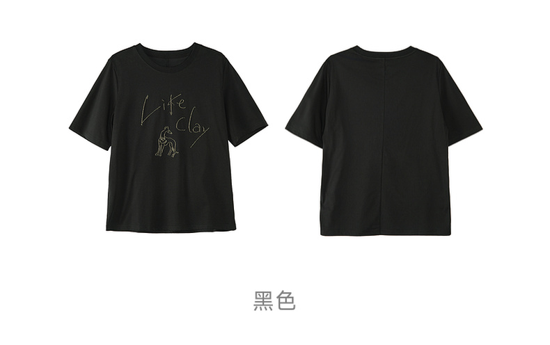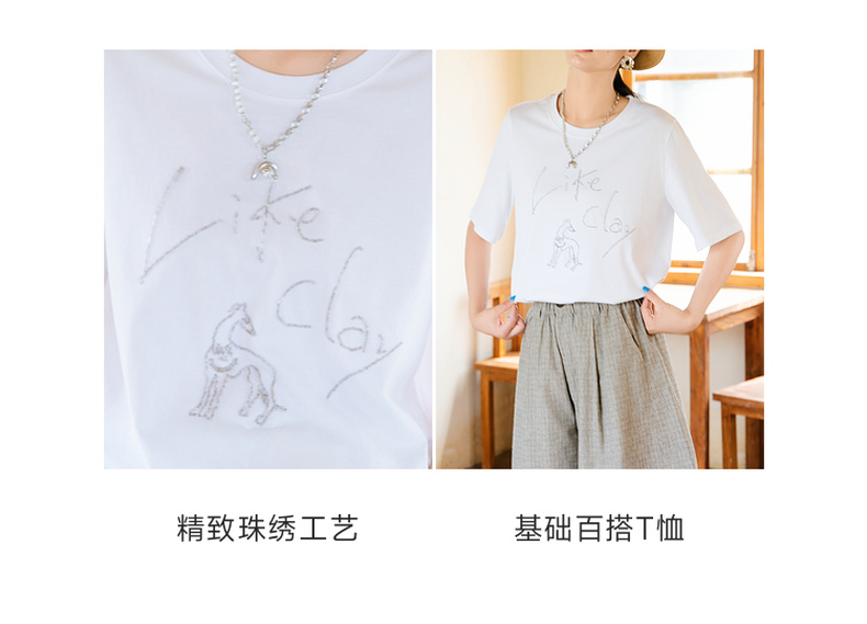 谜底T恤短袖女2025秋季新款简约百搭宽松钉珠绣花上衣257MT7774