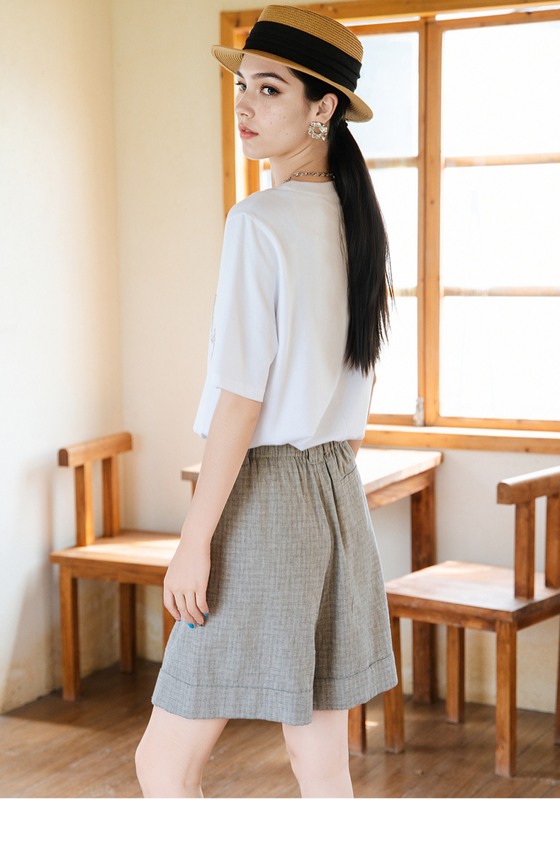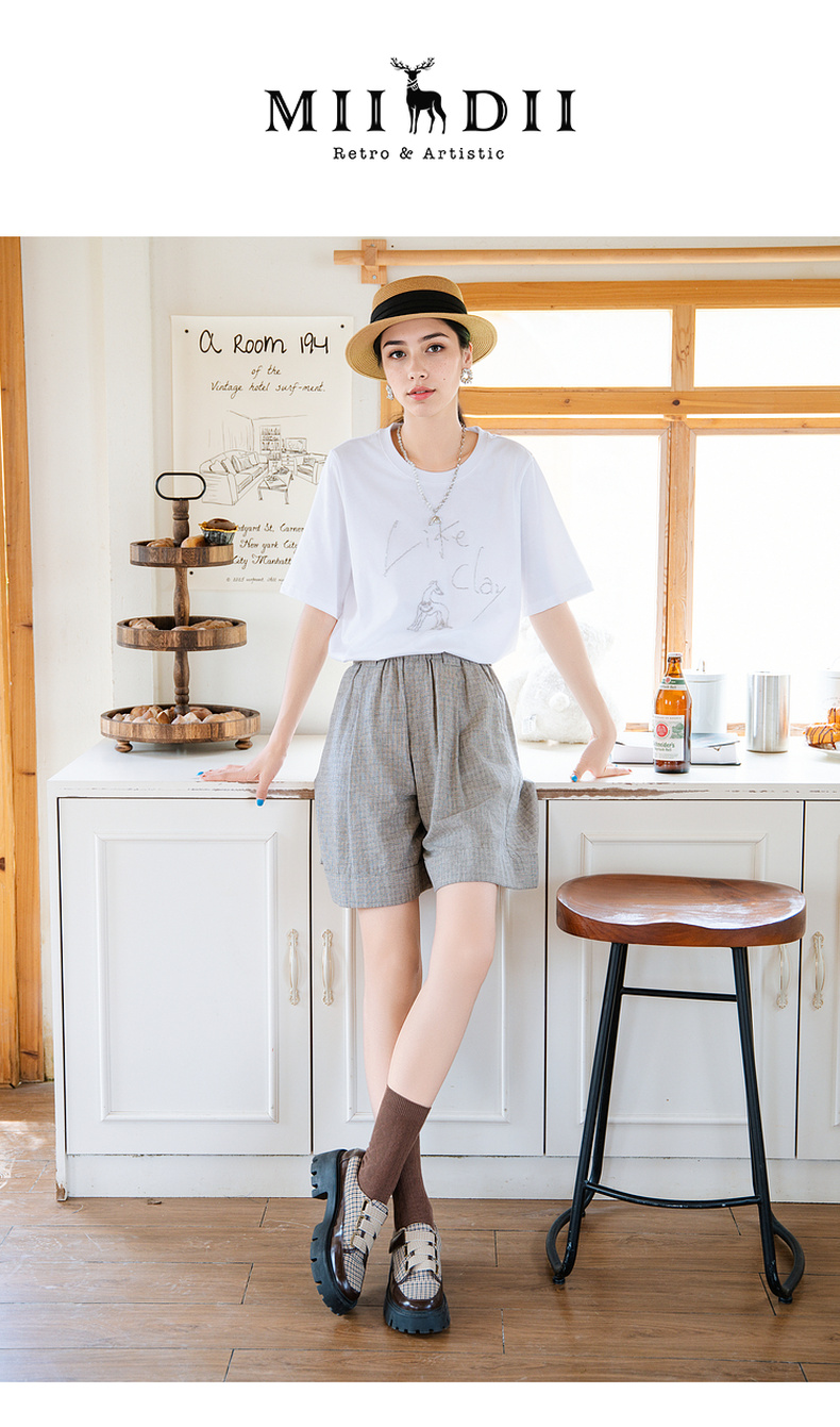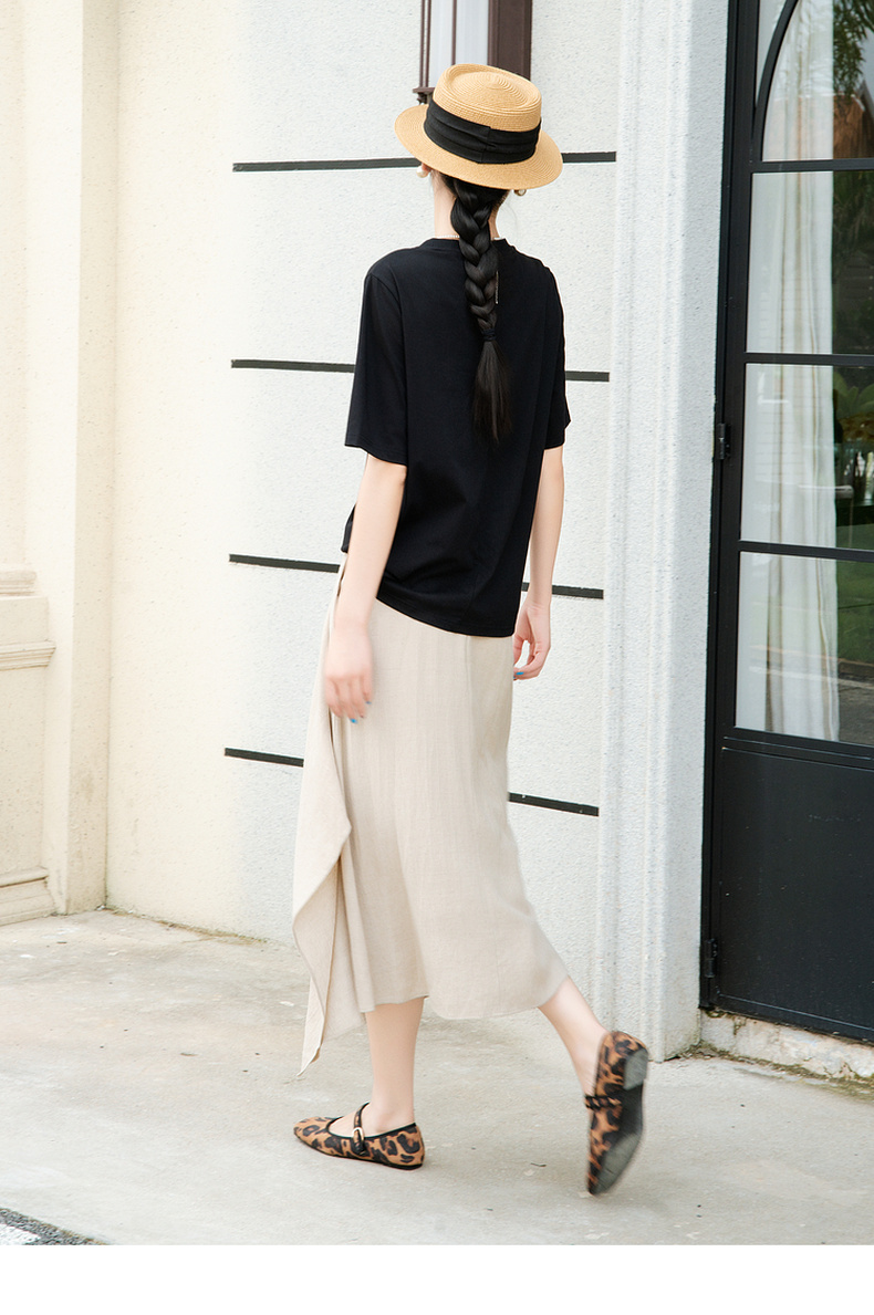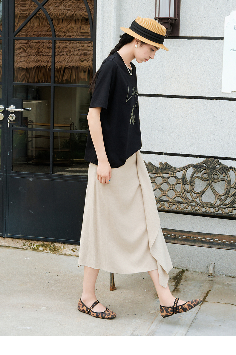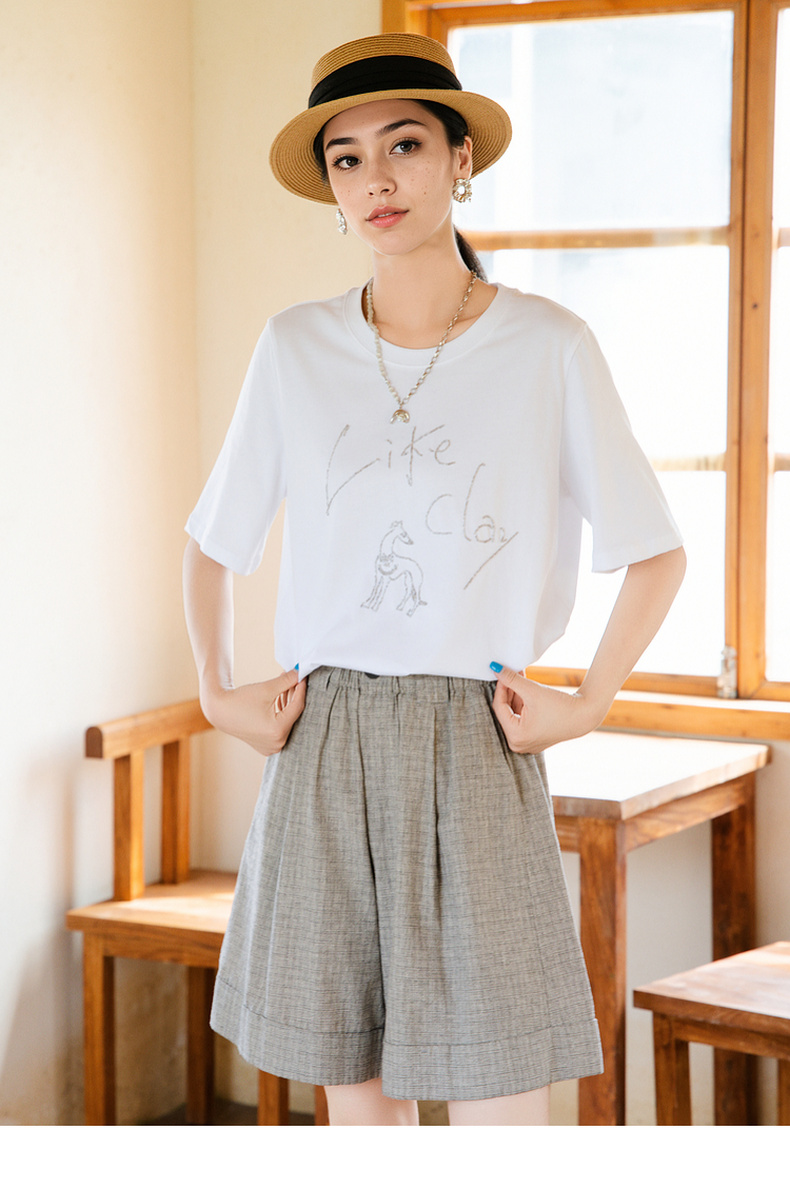 谜底T恤短袖女2025秋季新款简约百搭宽松钉珠绣花上衣257MT7774