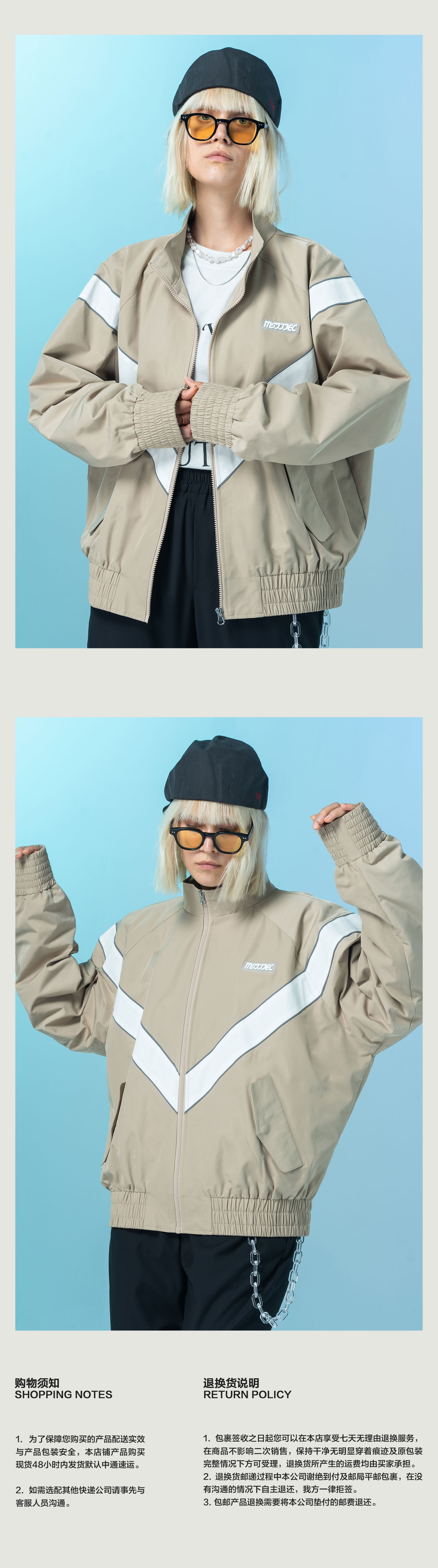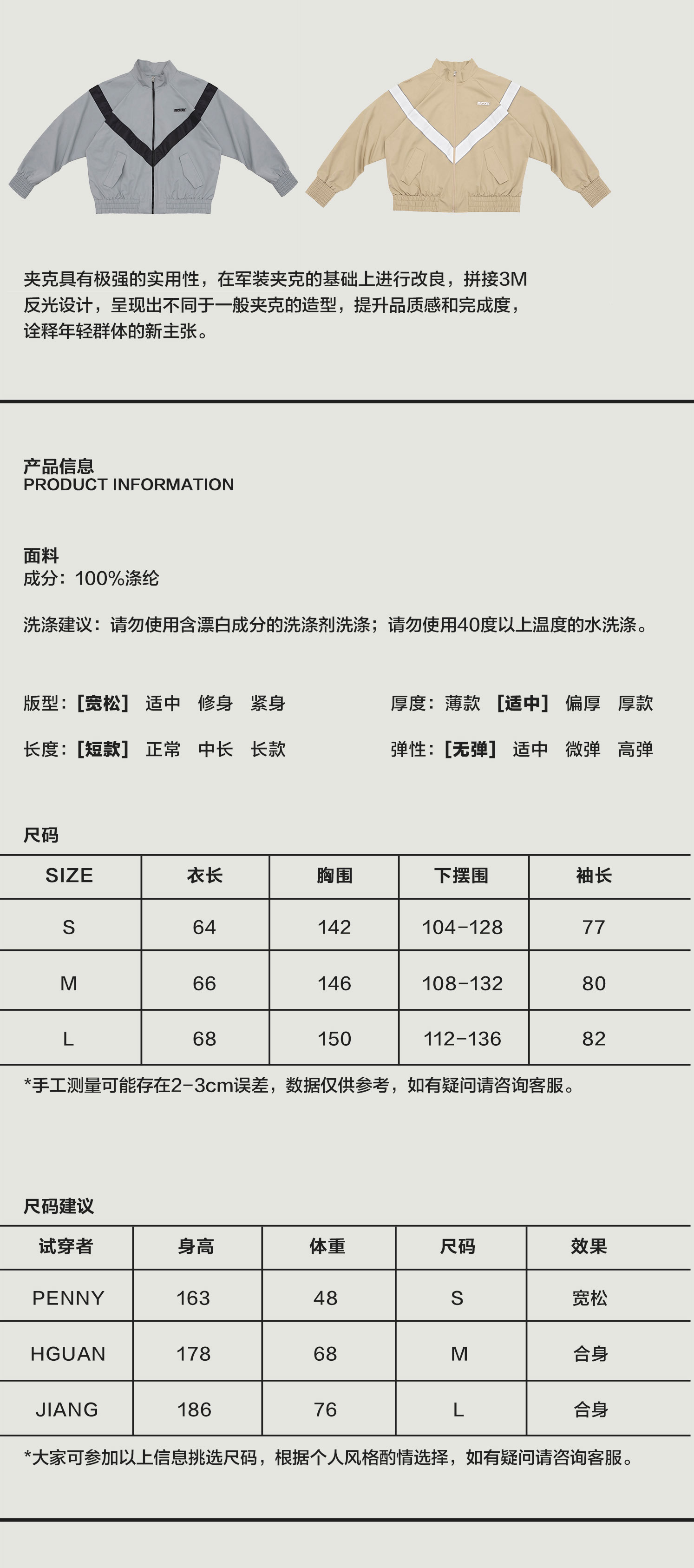 | 衣门襟: 拉链门襟 | 颜色: 卡其色,海盐灰 |