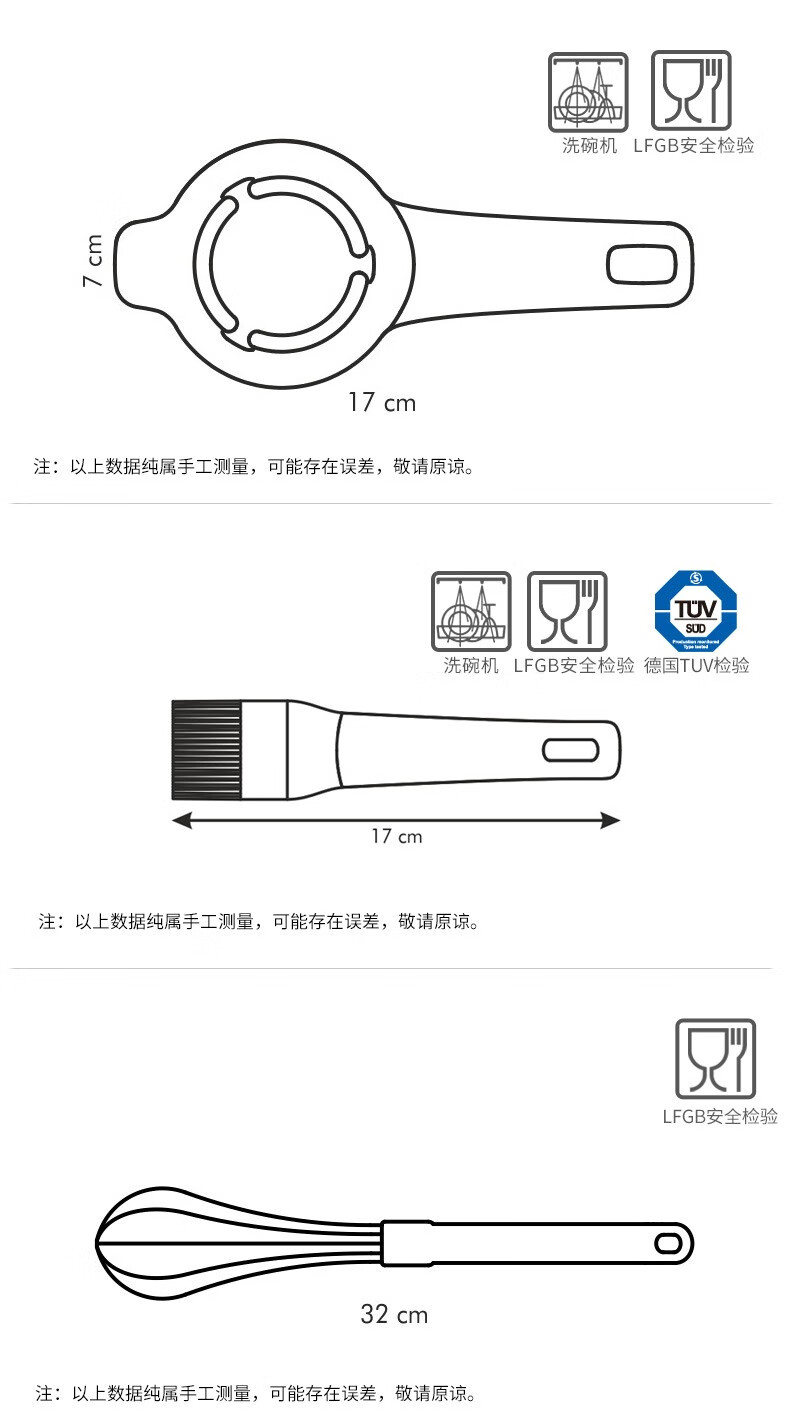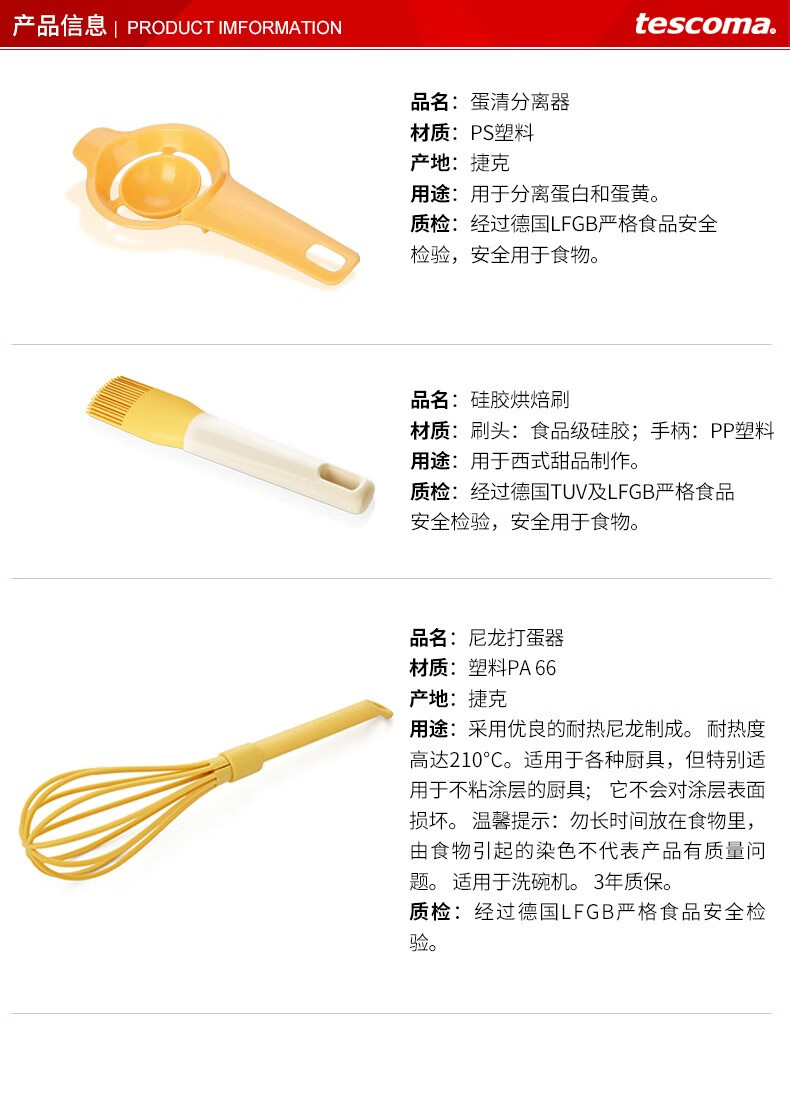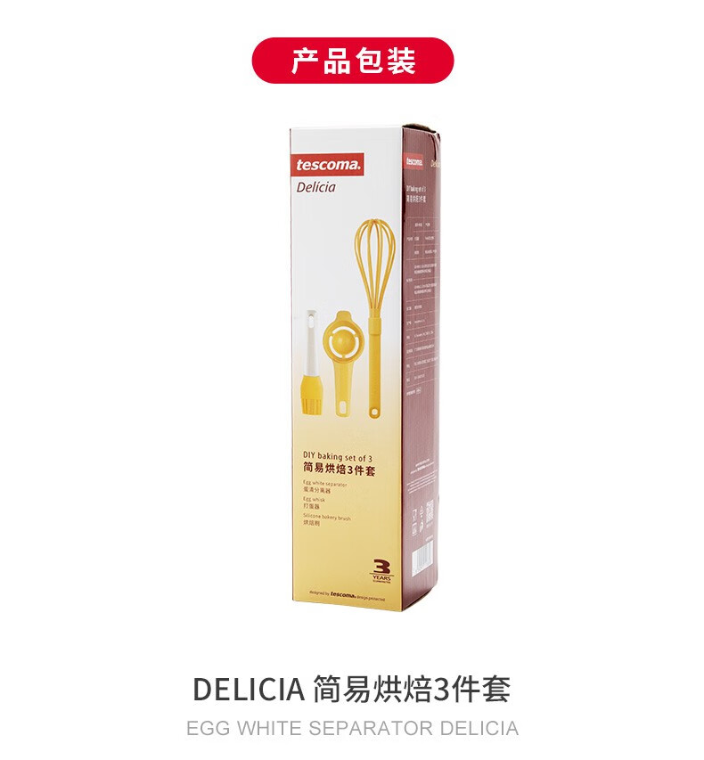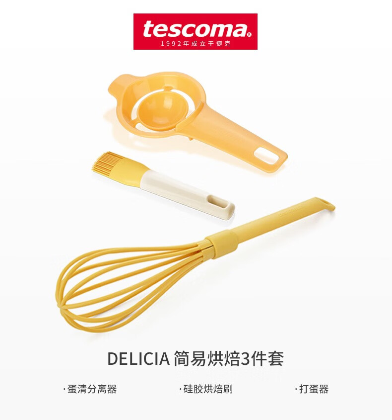 tescoma简易烘焙工具3件套 硅胶刷蛋清分离器打蛋器