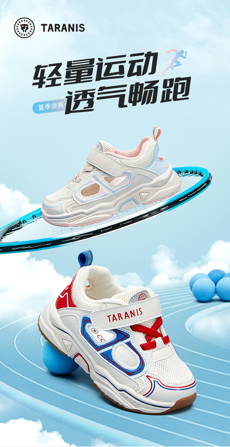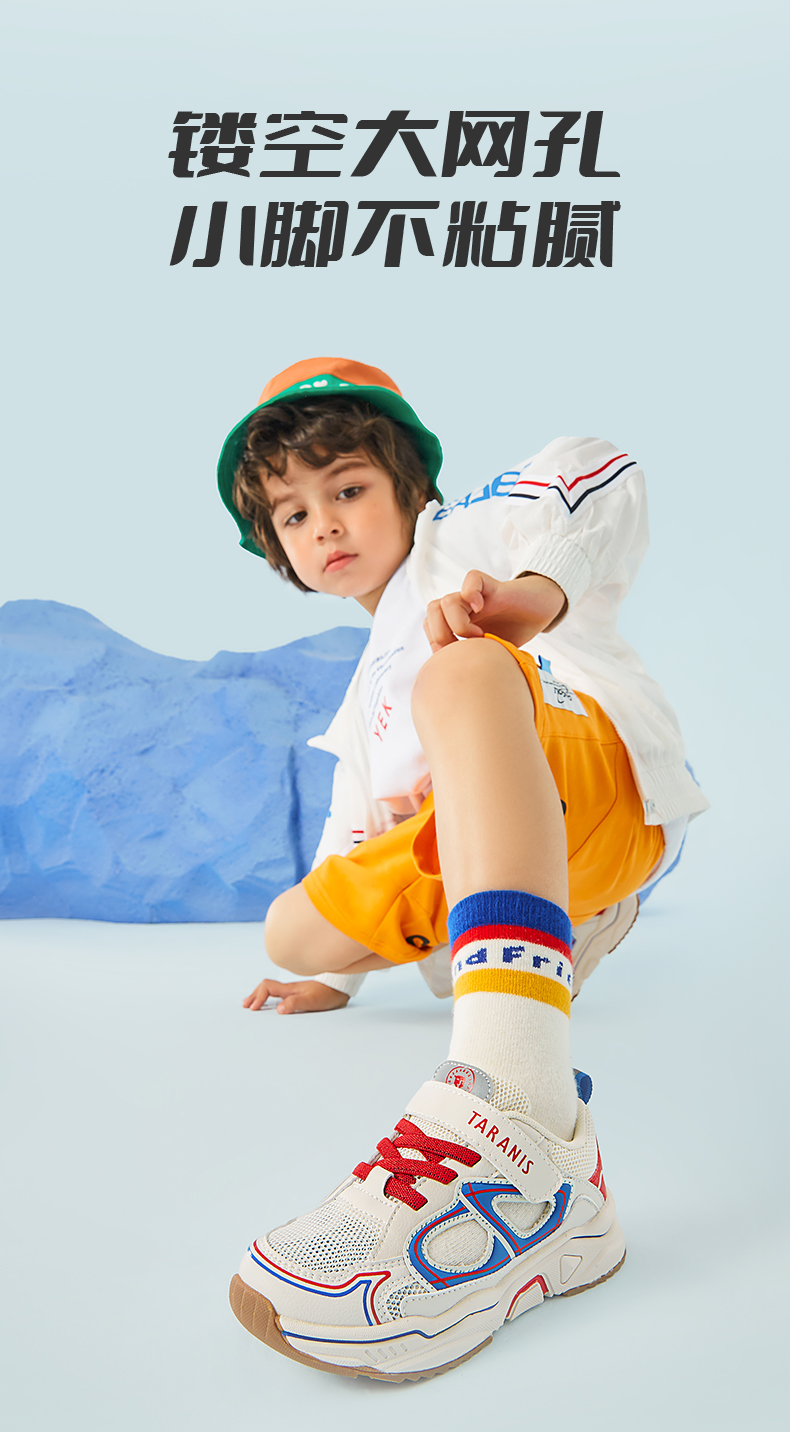 泰兰尼斯夏款小童段时尚撞色镂空透气运动鞋T01X3B2703