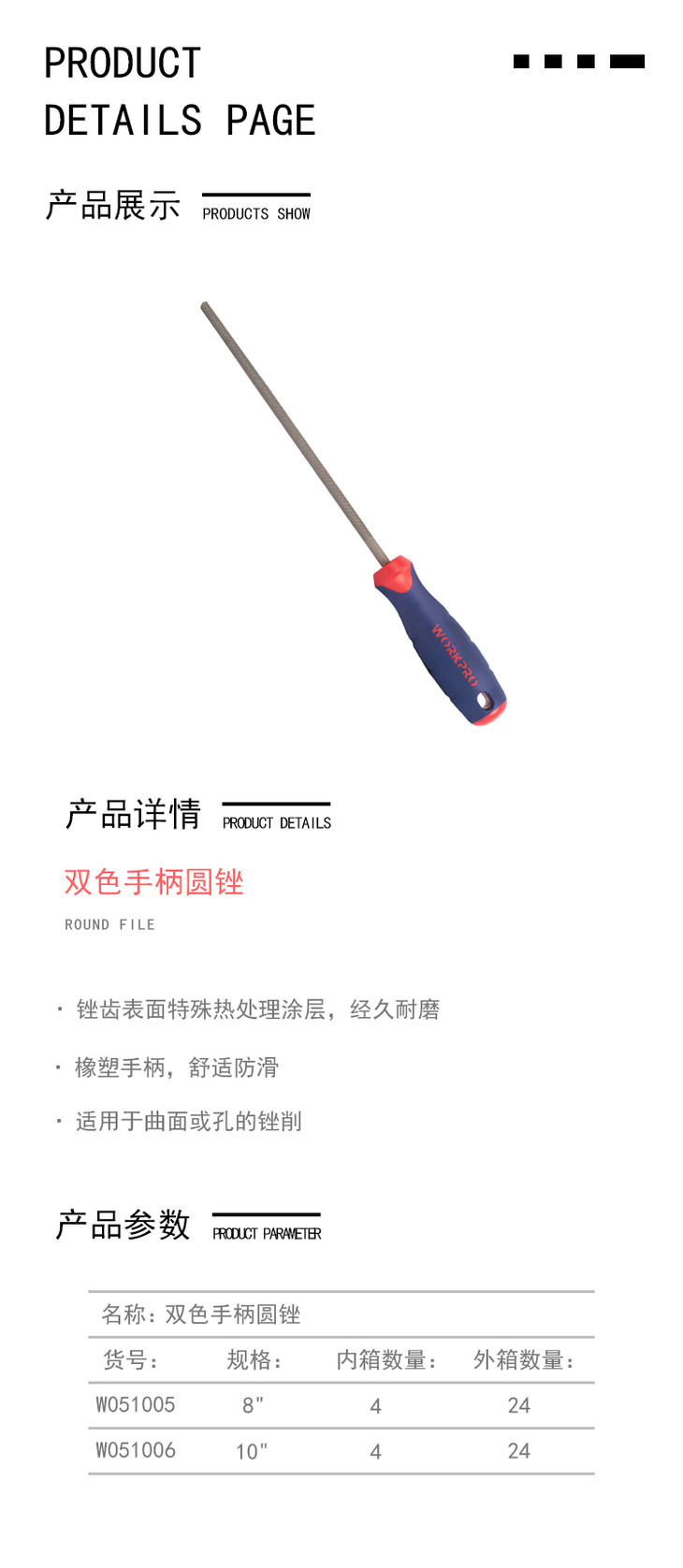 万克宝双色手柄中齿圆锉10寸 史丹利中齿圆锉8寸