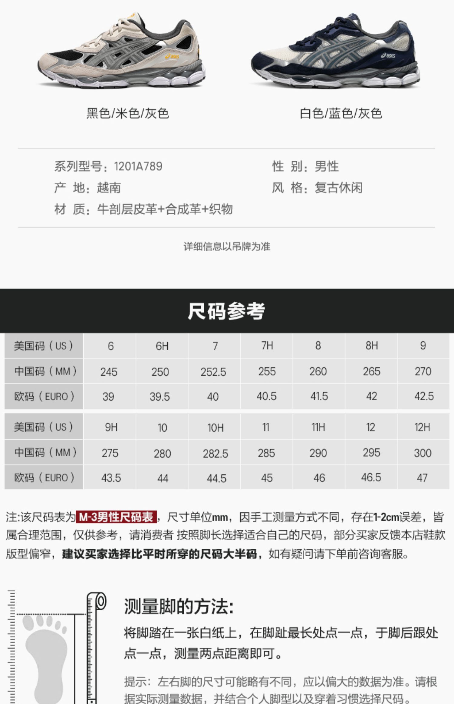 【双旦特惠:品牌特卖场福利限购活动】ASICS亚瑟士新款男女GEL-NYC运动时尚复古减震透气情侣休闲鞋