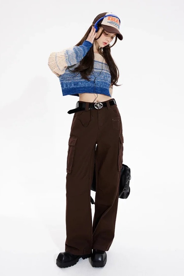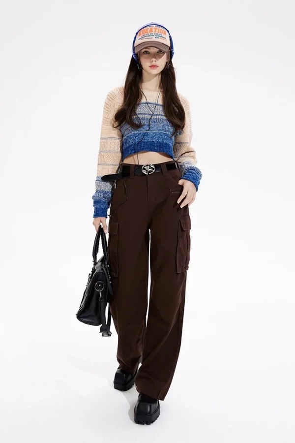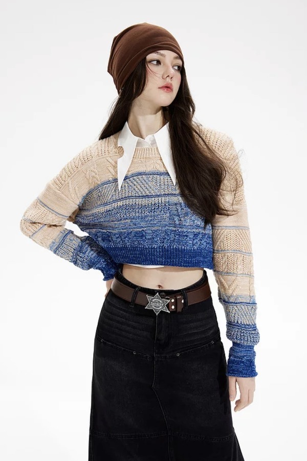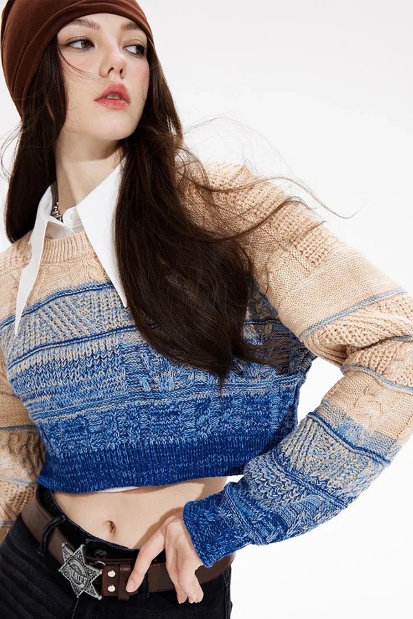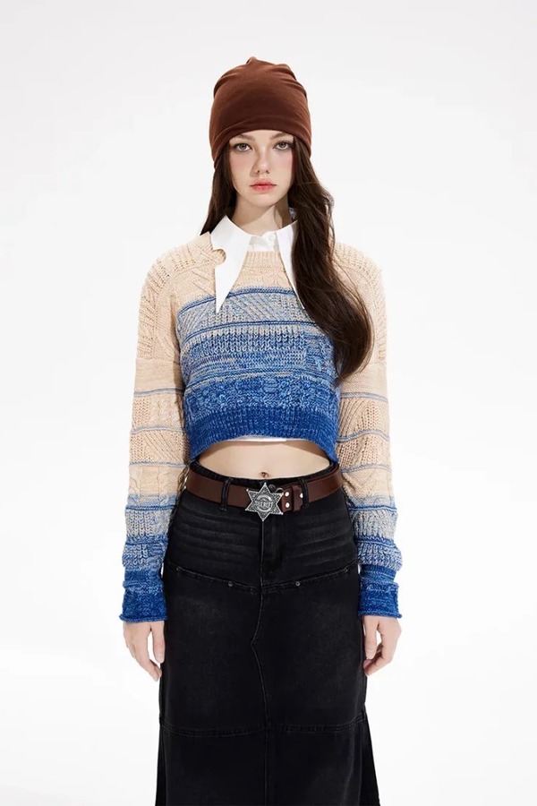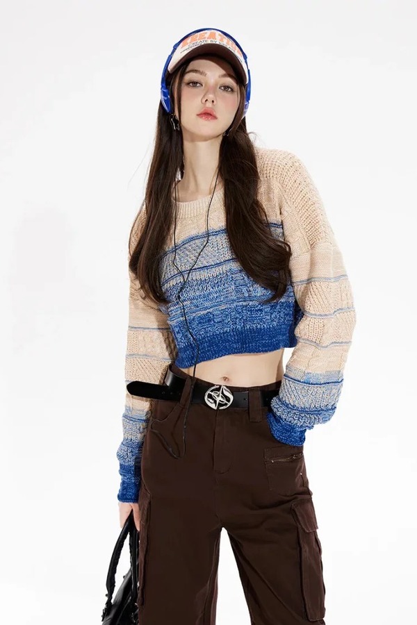 MEETLADY/米莱达 圆领短款渐变针织毛衣上衣 18988