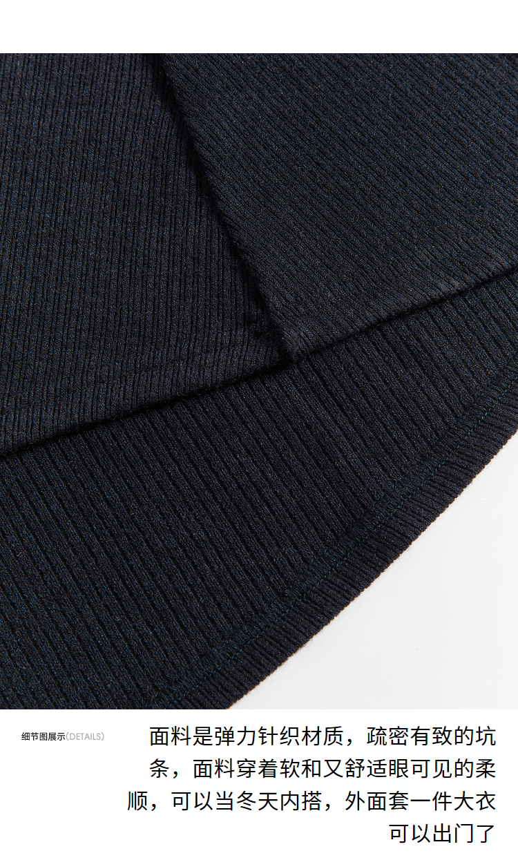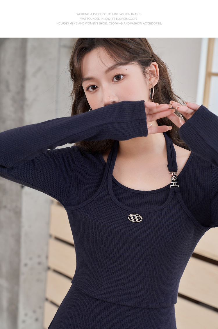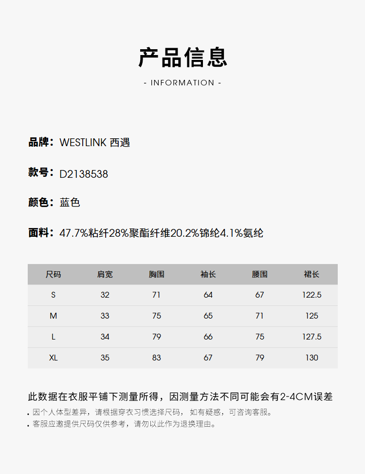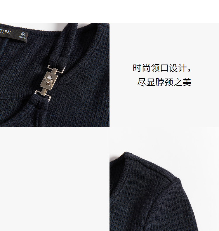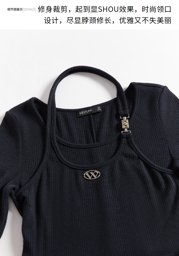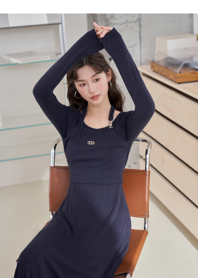 西遇长袖针织连衣裙女新款优雅坠垂感修身显瘦蓝色裙子D2138538