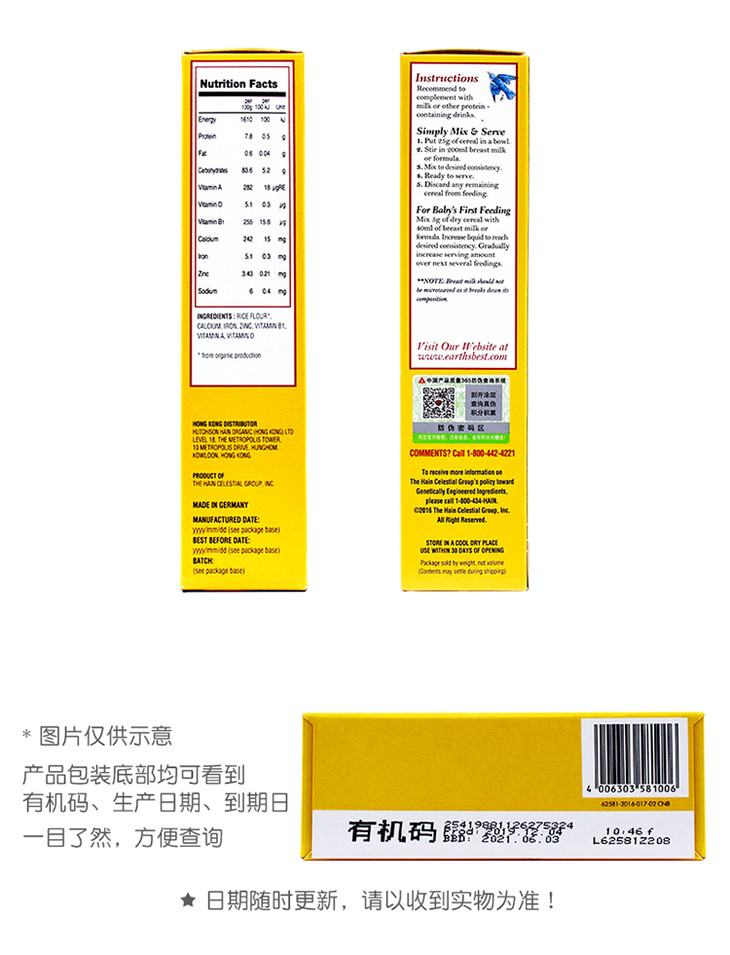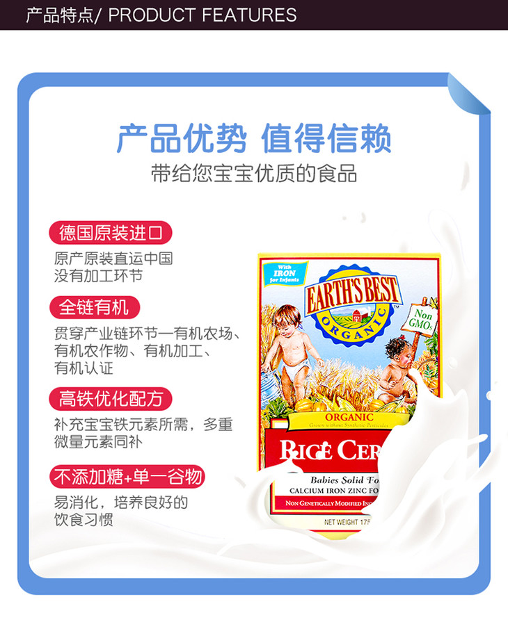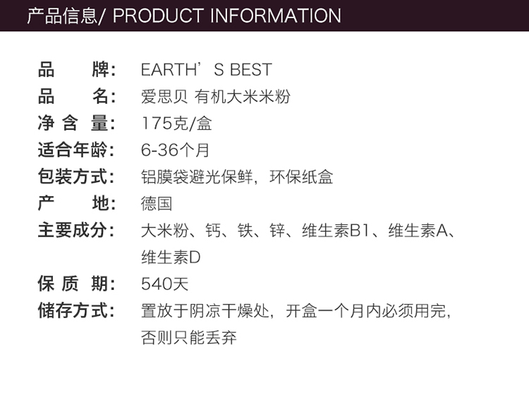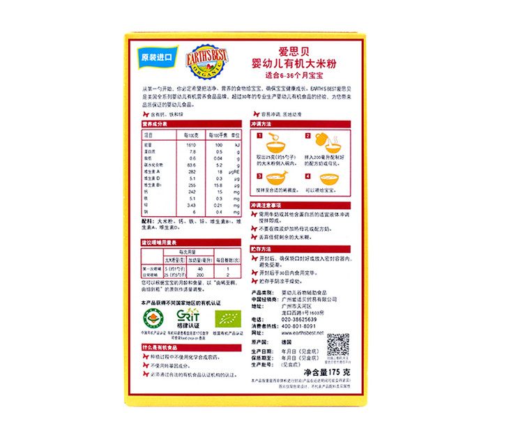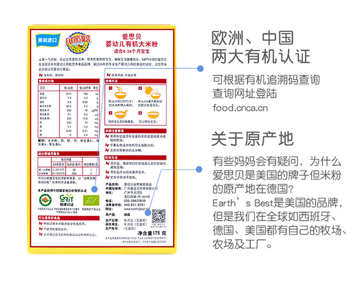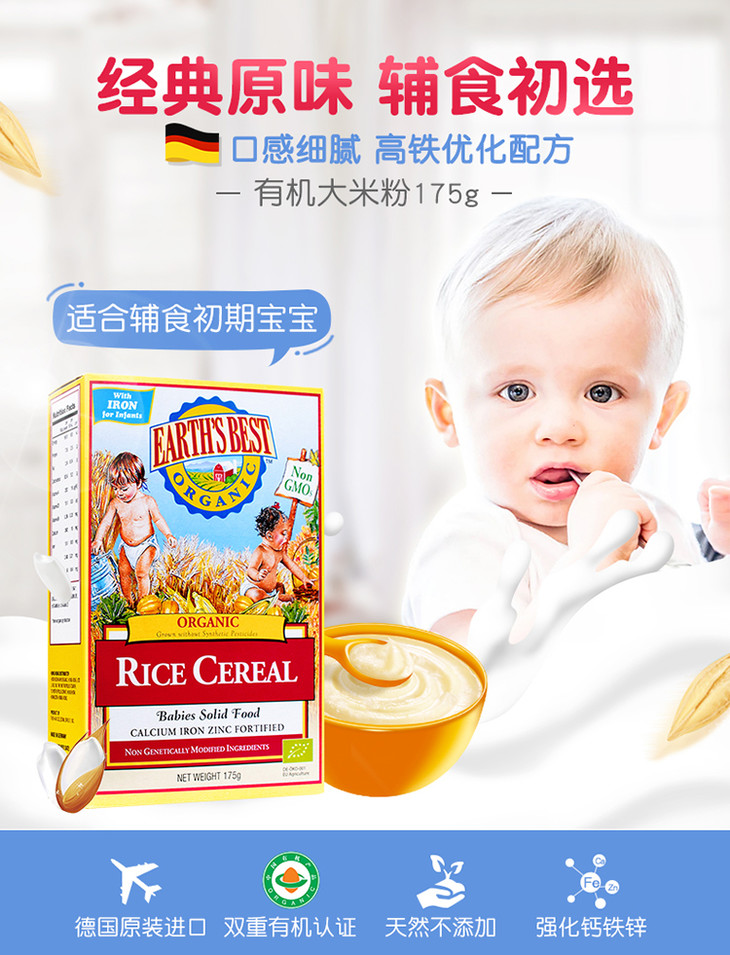 美国爱思贝EARTH'S BEST婴幼儿多口味有机米粉175g