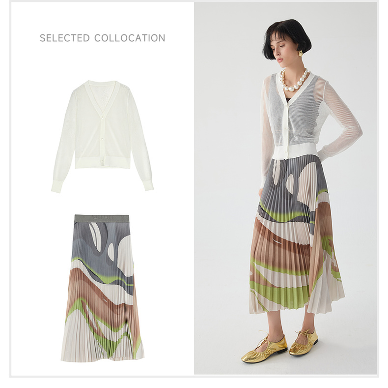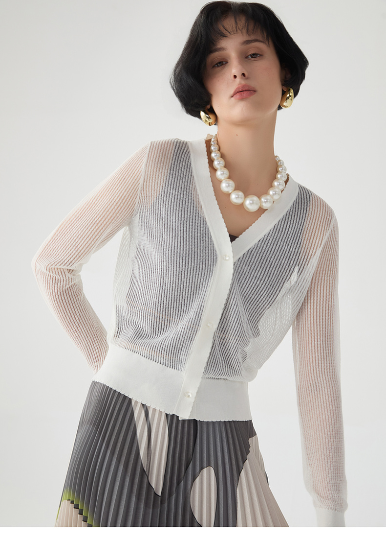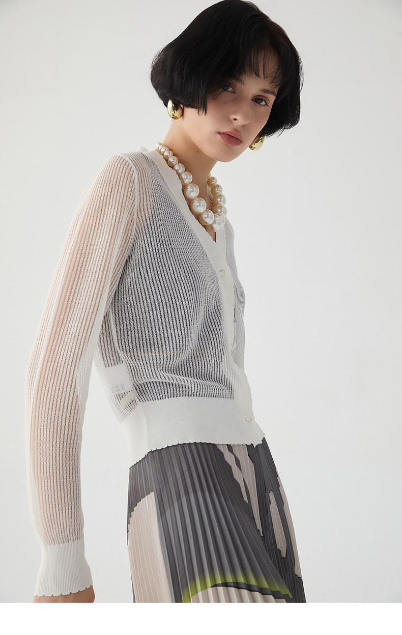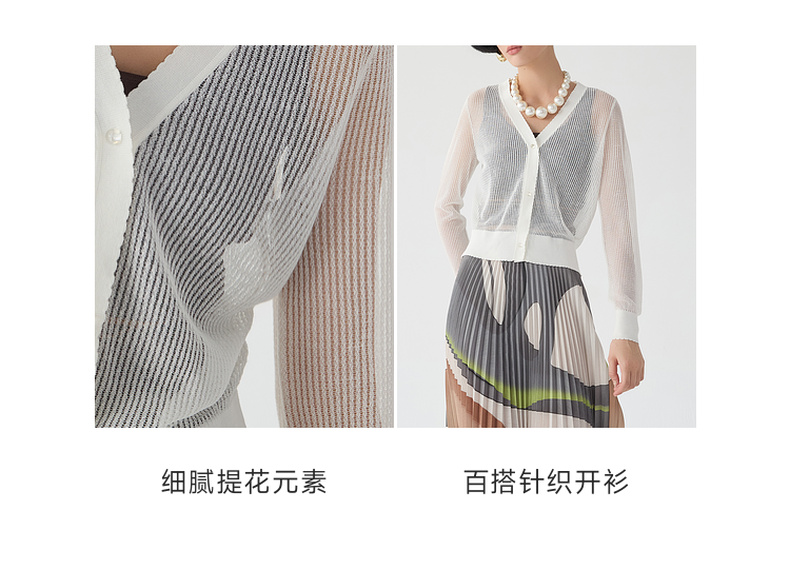 谜底针织开衫长袖女2025春款百搭短款肌理提花毛织上衣251MZ0382