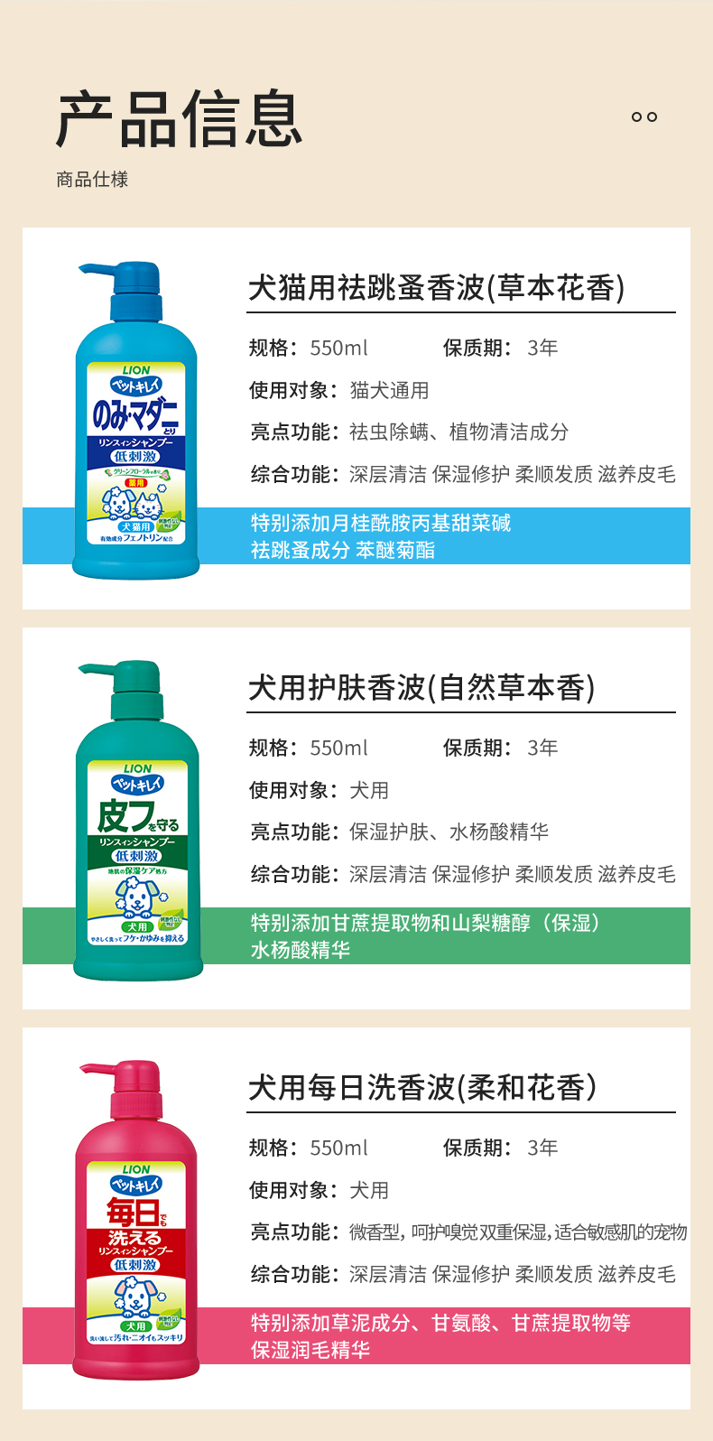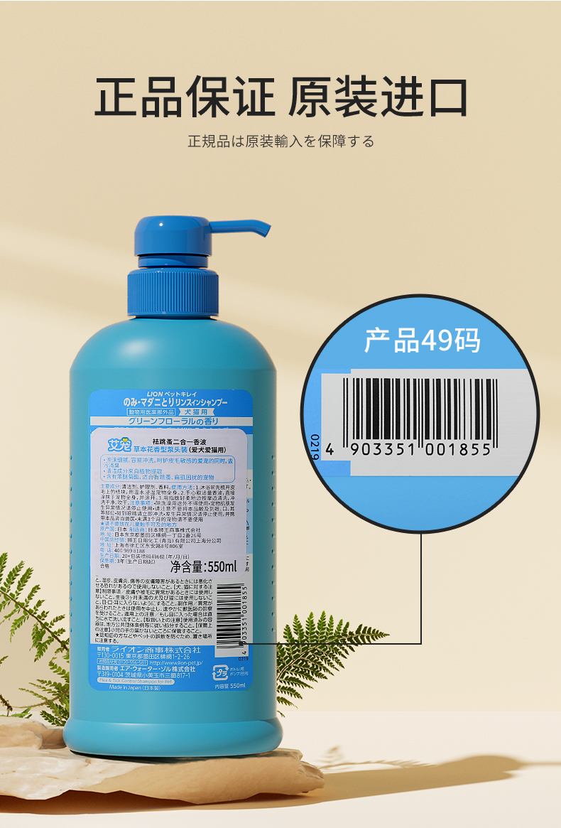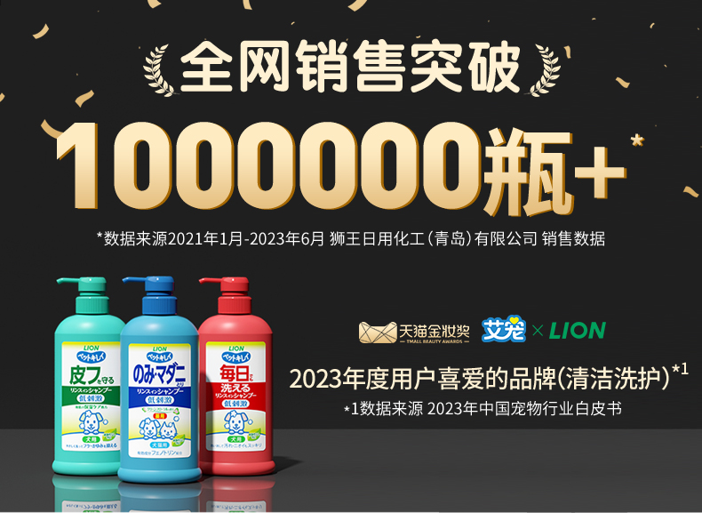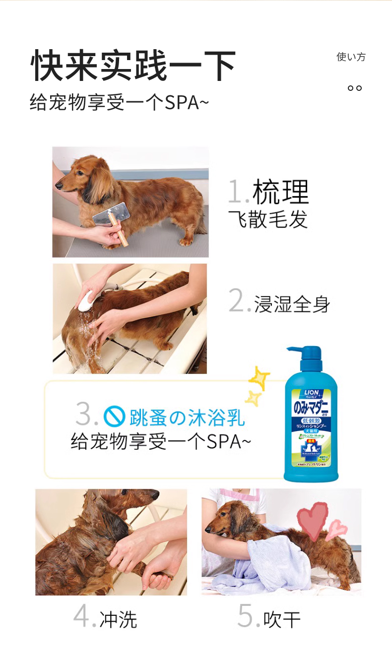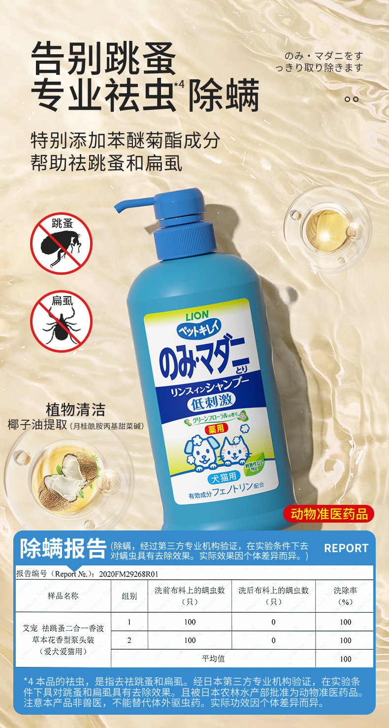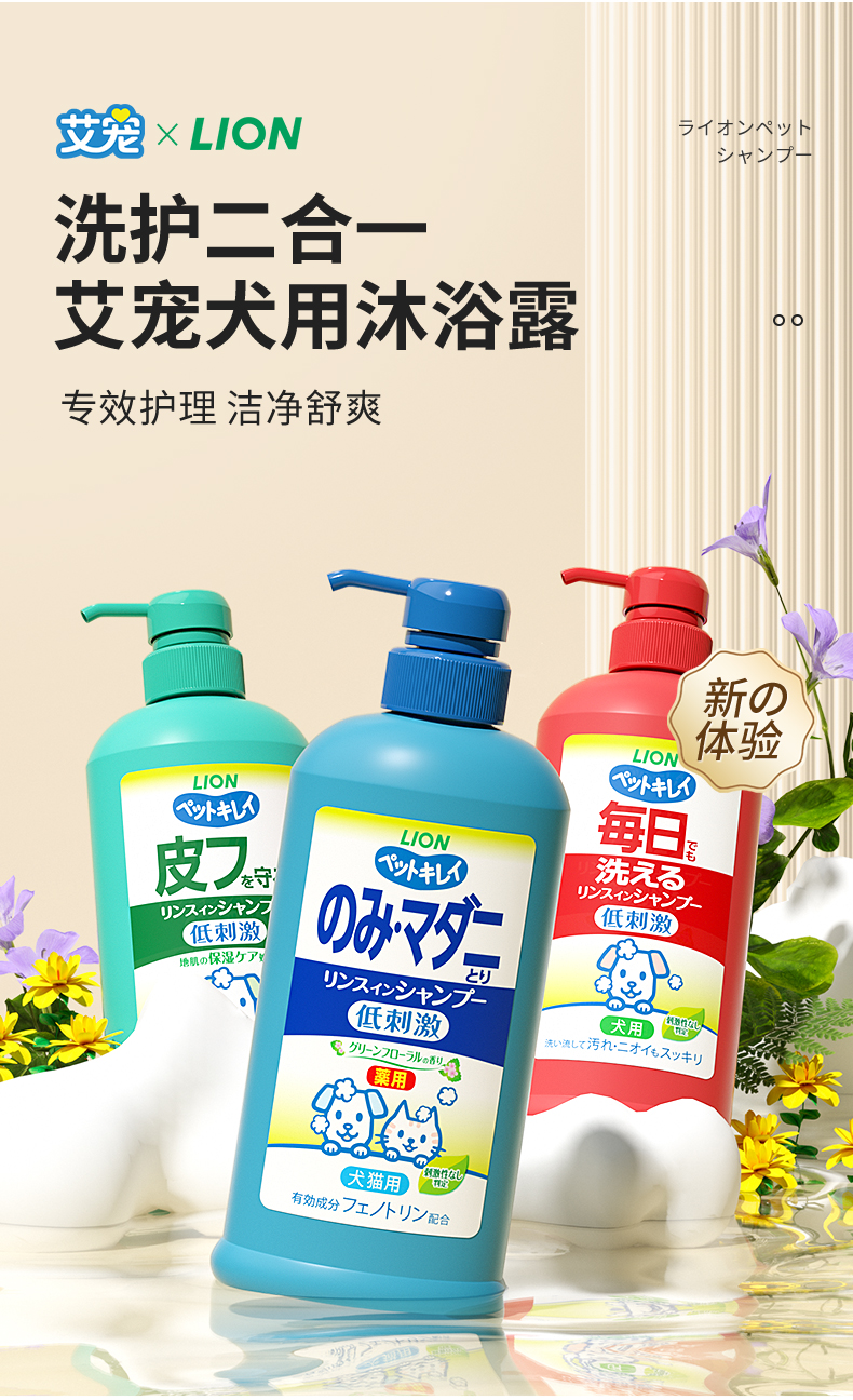 Lion狮王猫狗沐浴露祛蚤洗护二合一宠物香波330ml/瓶