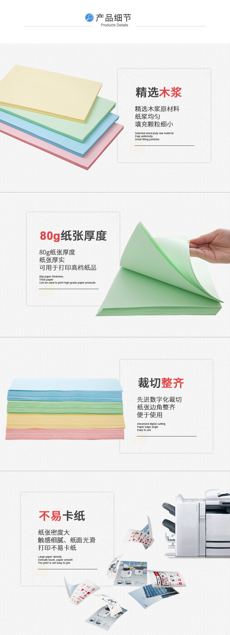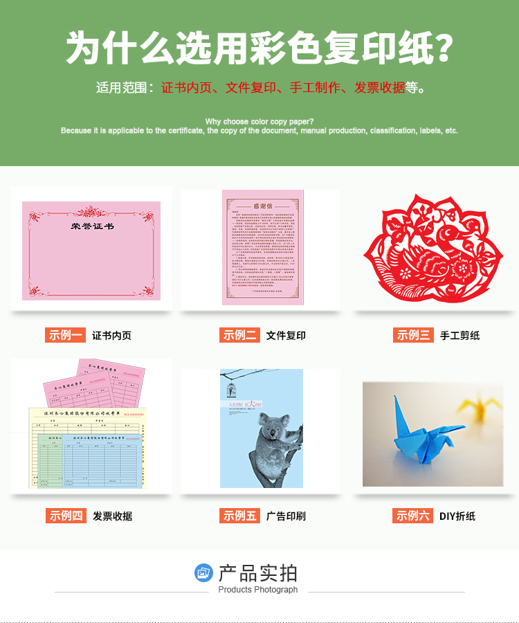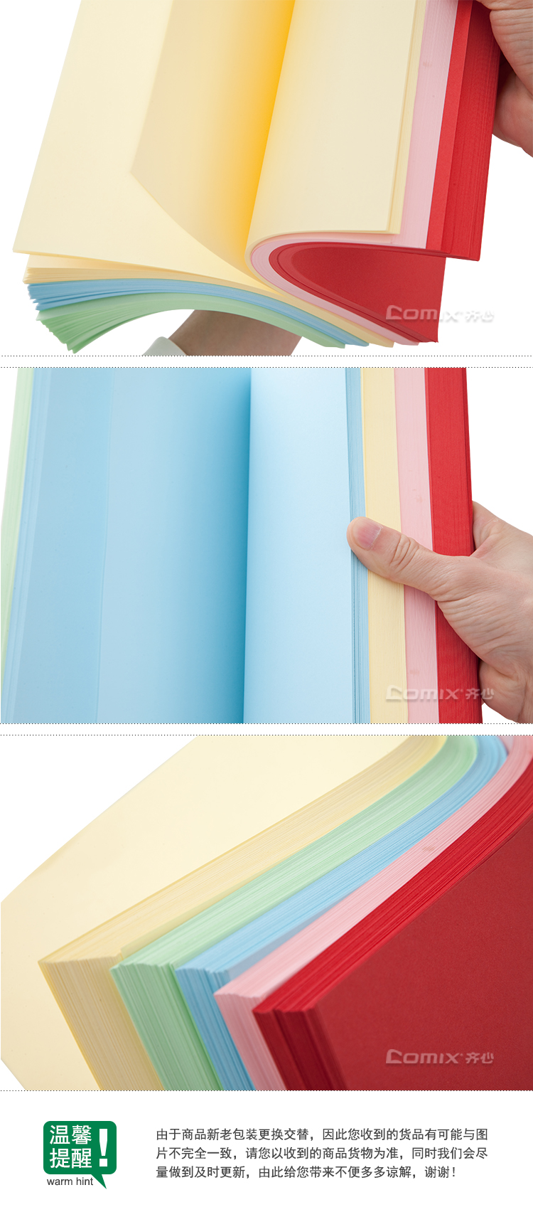 齐心彩色复印纸A4 80g 100张/包 打印纸折纸粉红色浅黄色浅蓝色浅绿色大红色 1包