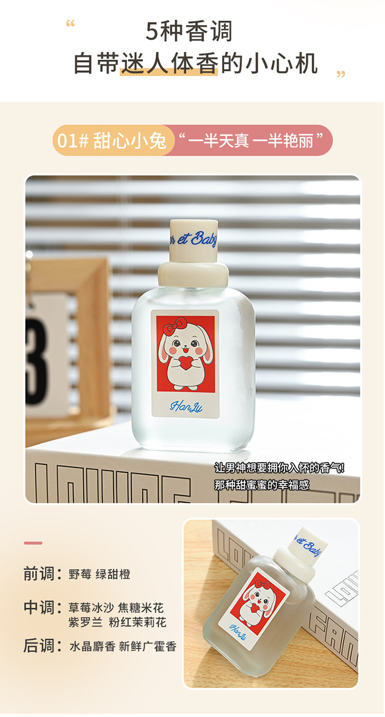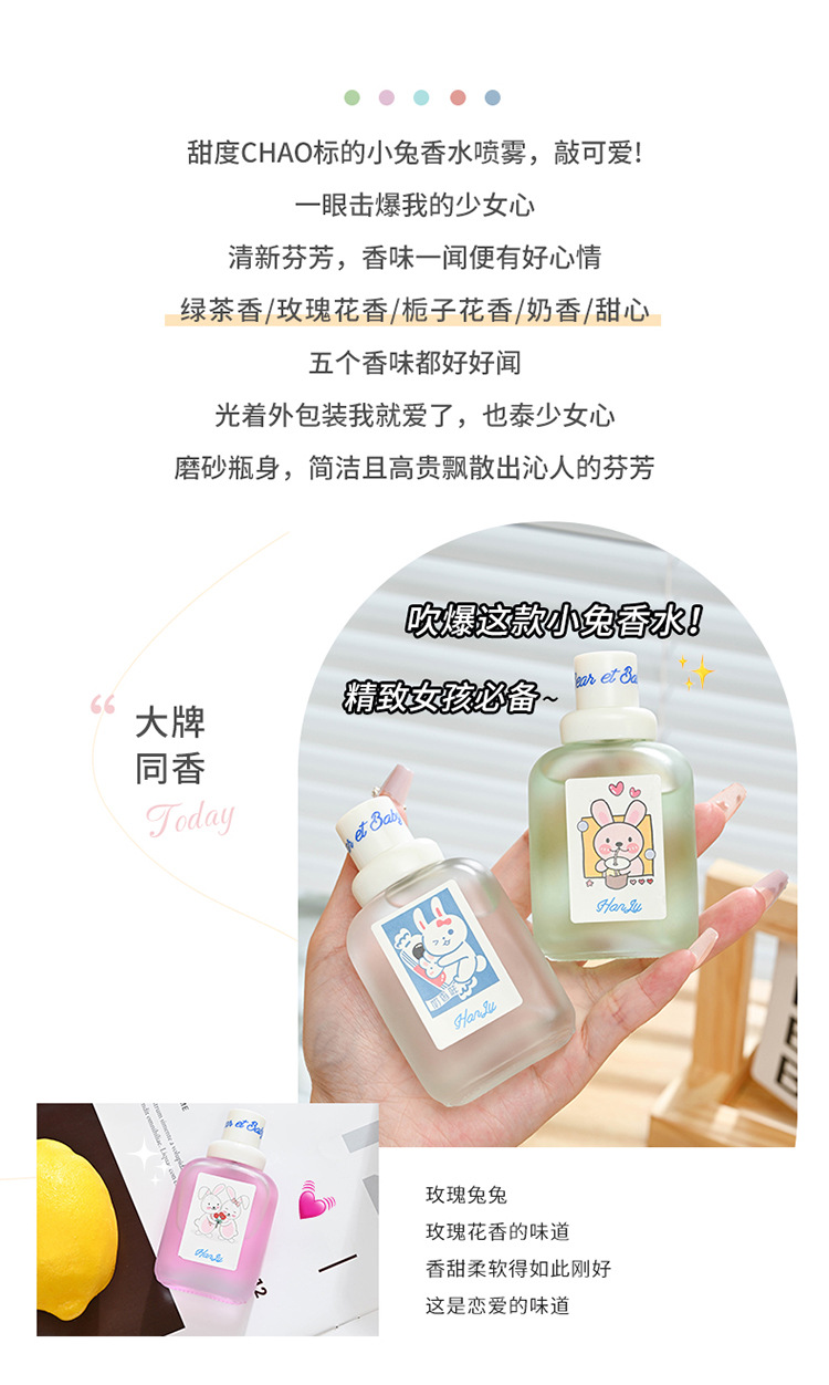 【绽放少女心,第二件立减5元!】韩卢小兔宝宝女士香水,突显个性之选。持久淡香,让你散发迷人魅力,成为时尚圈网红爆款。少女心十足,点燃少女梦想!小众平价,让你在众人中脱颖而出。