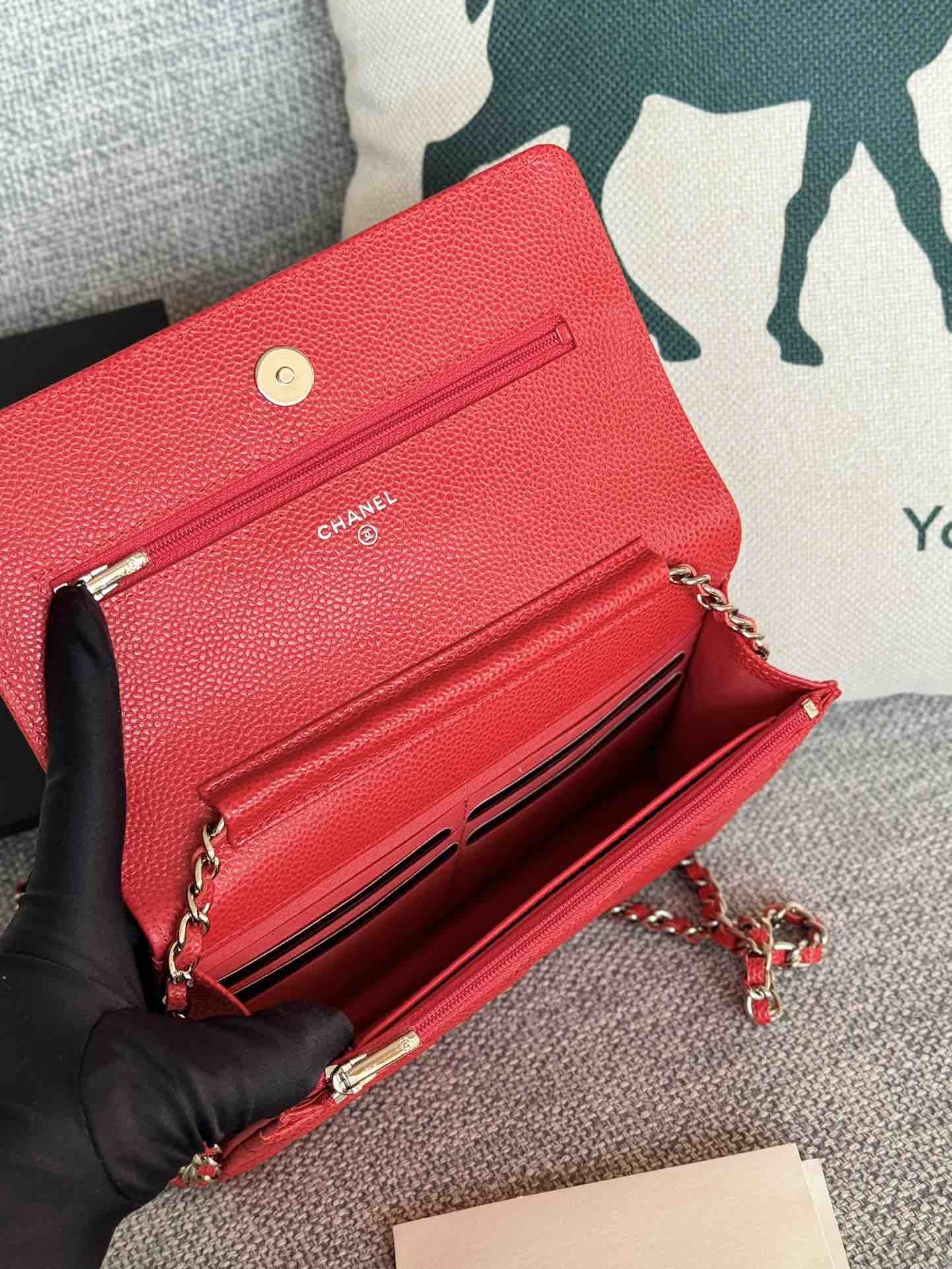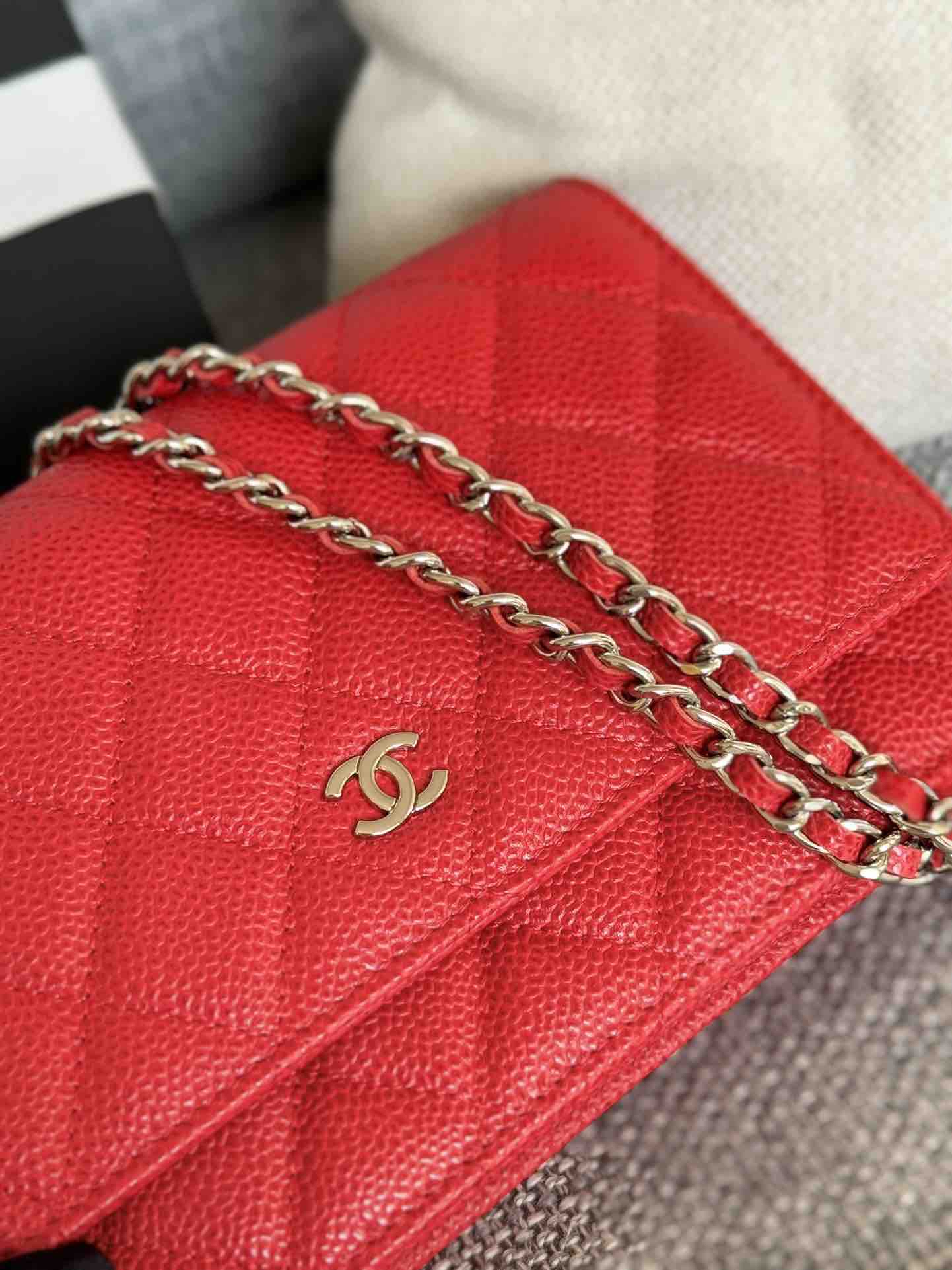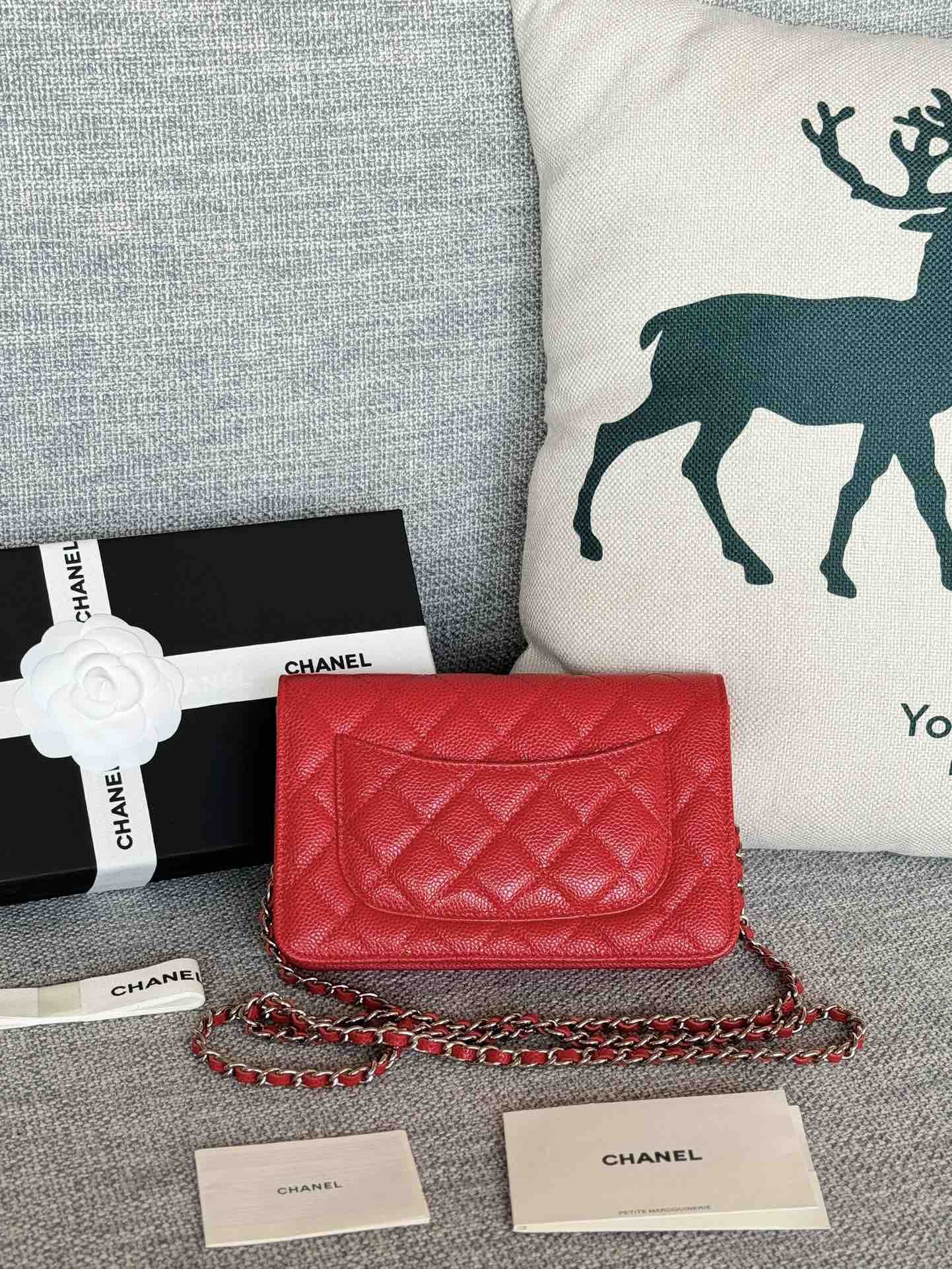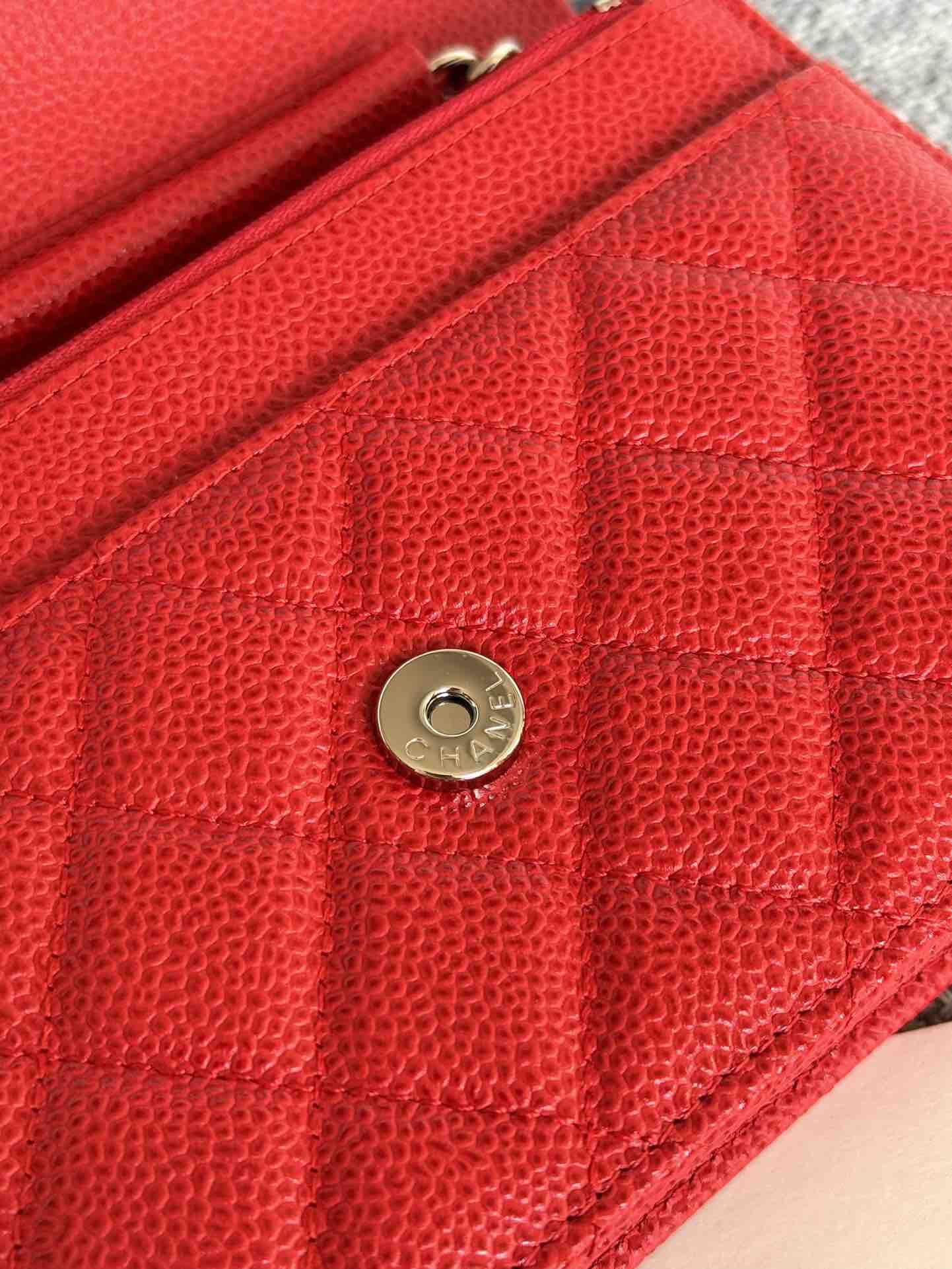 香奈儿woc链条包🉐️牛皮-红色银扣(粗球纹)
