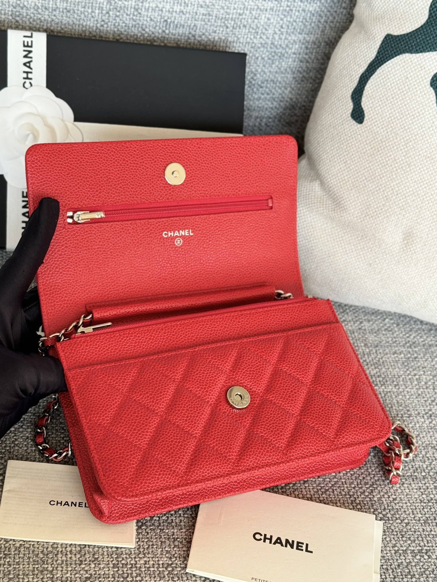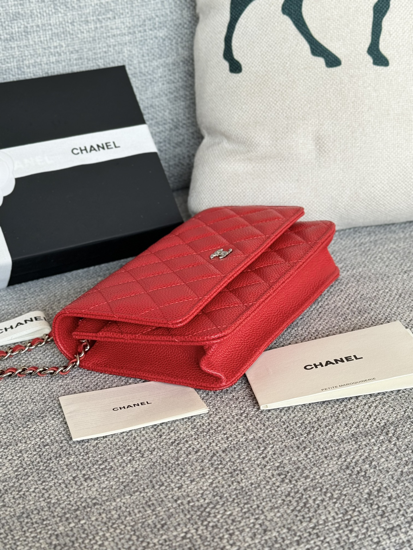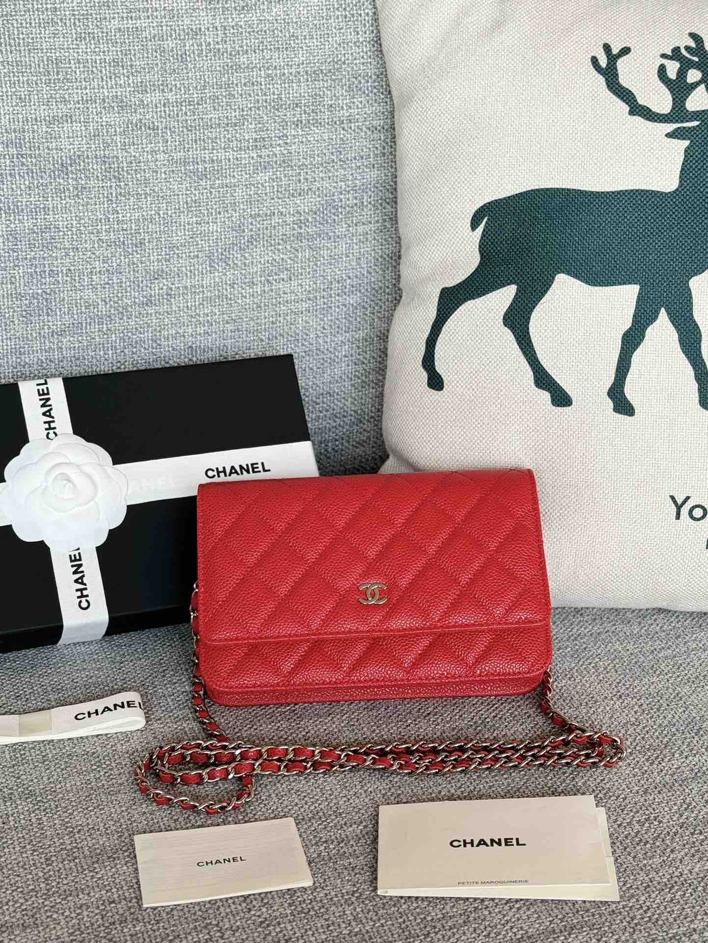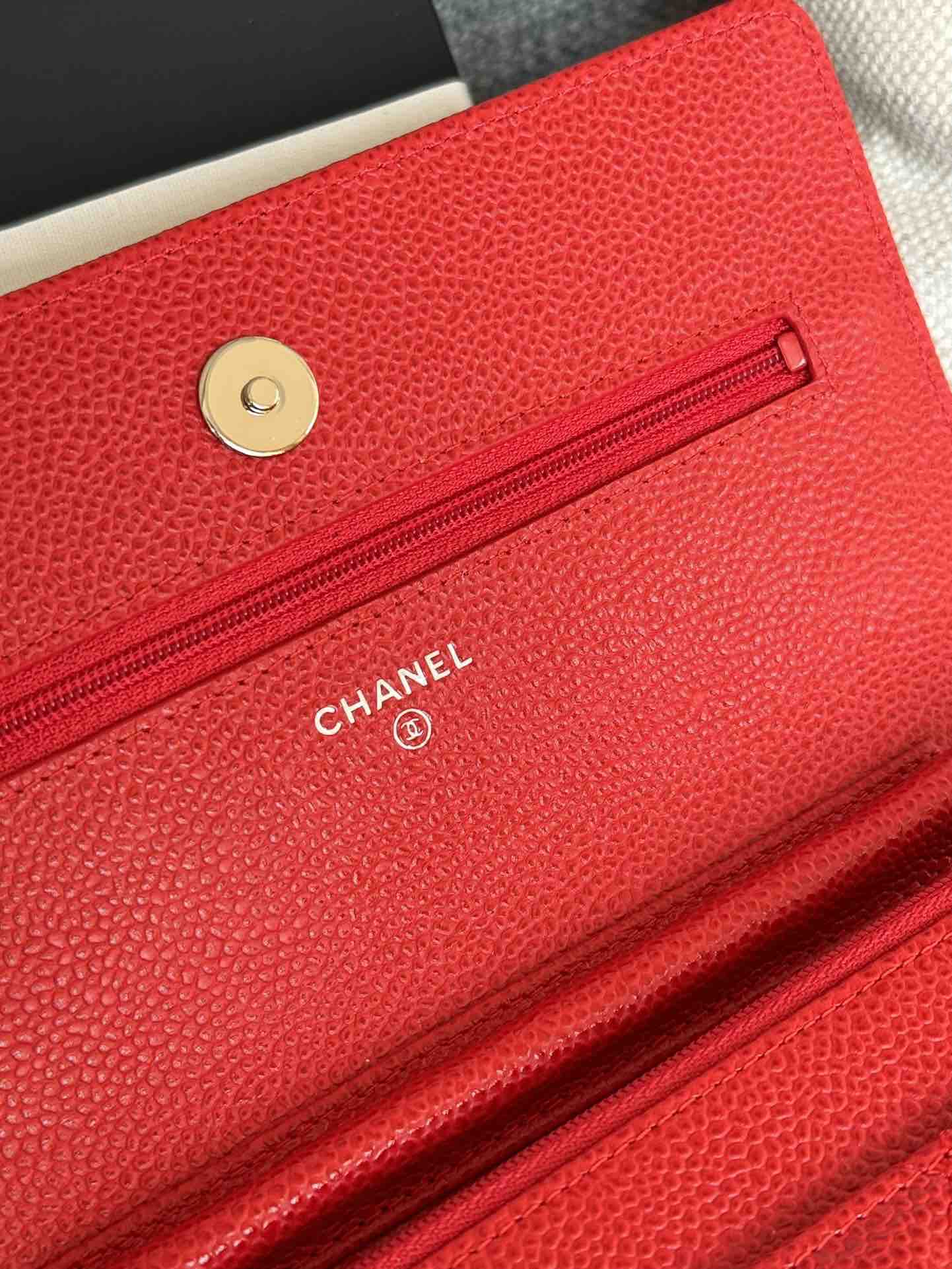 香奈儿woc链条包🉐️牛皮-红色银扣(粗球纹)