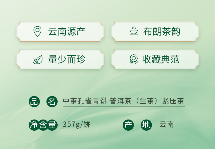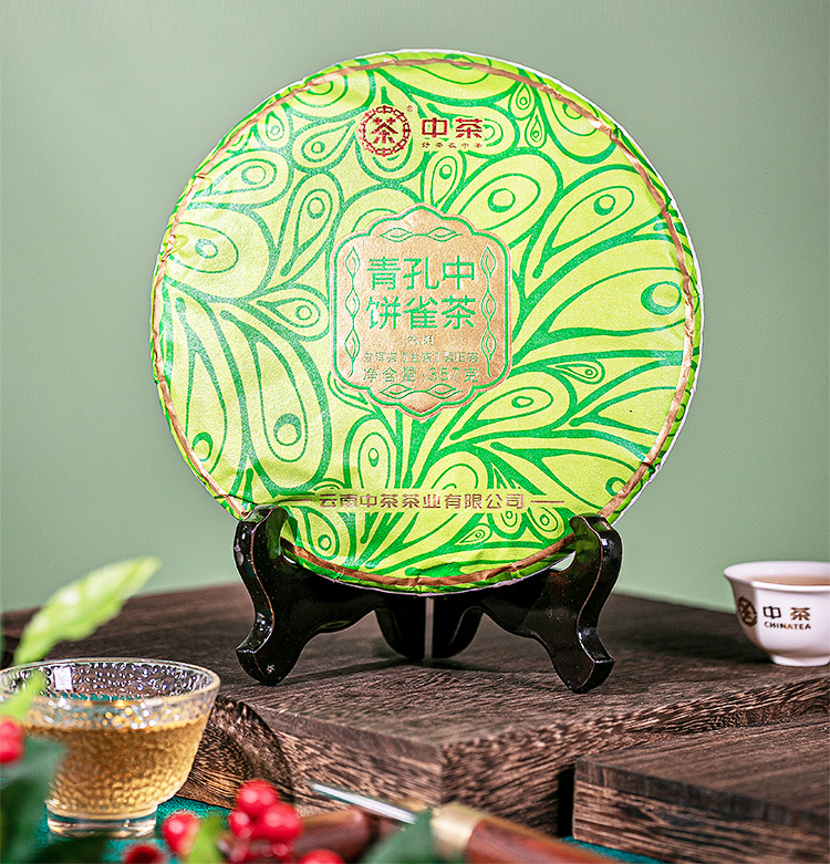 《中粮-中茶》2022年孔雀青饼普洱茶生茶饼357克/装