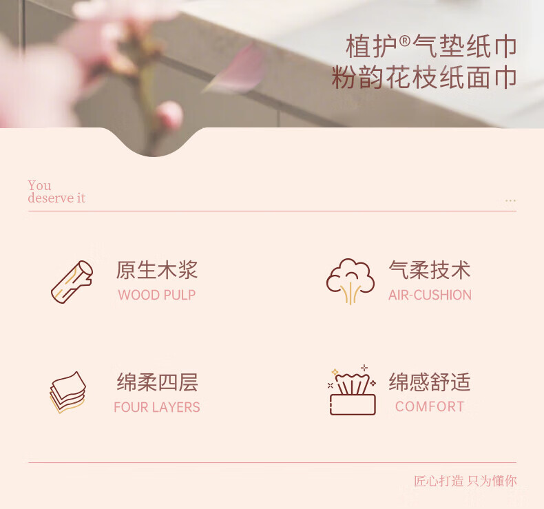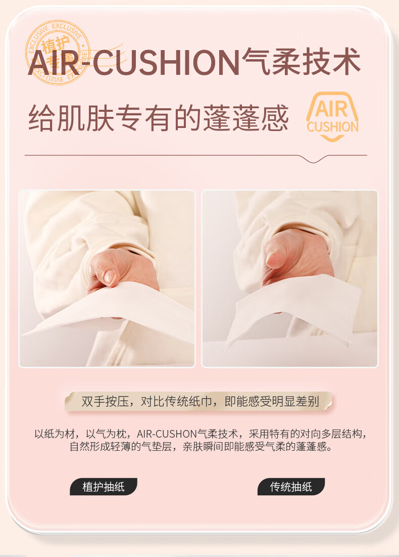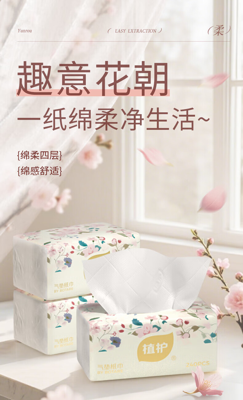 植护气垫纸巾·粉韵花枝纸面巾118*175mm4层60抽*30包/箱