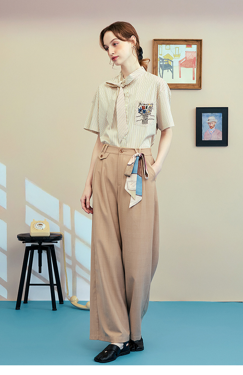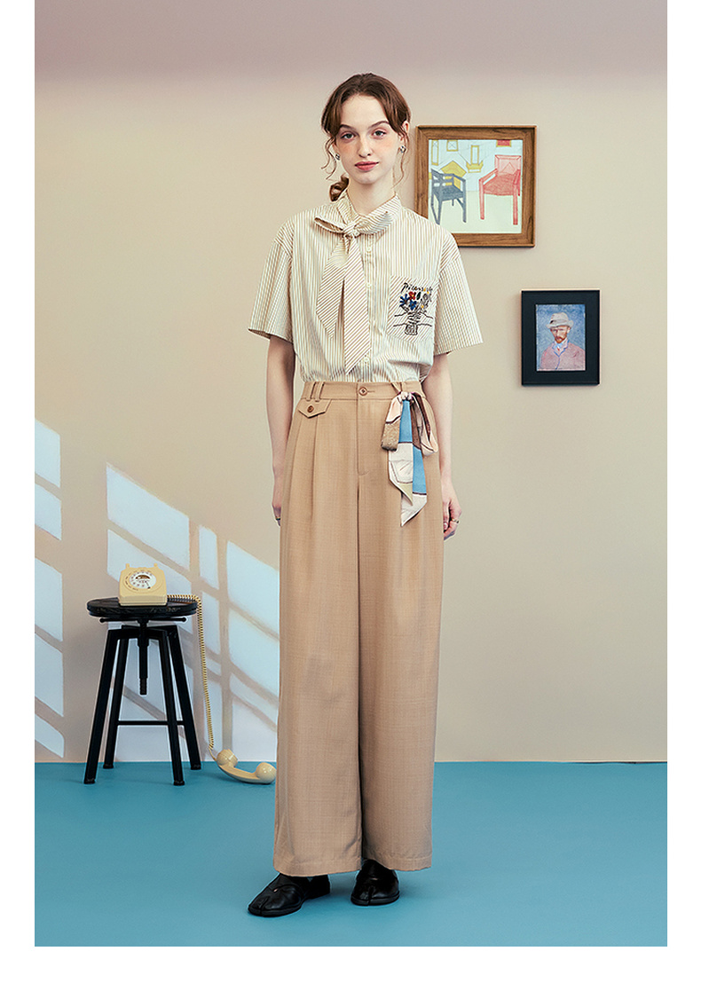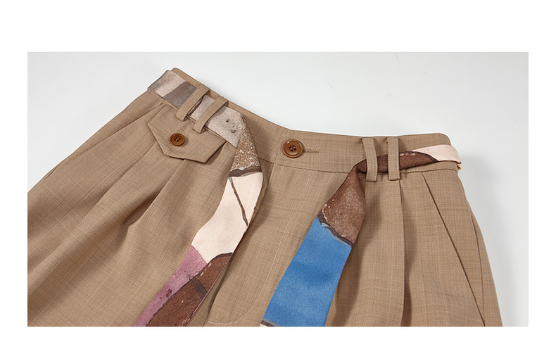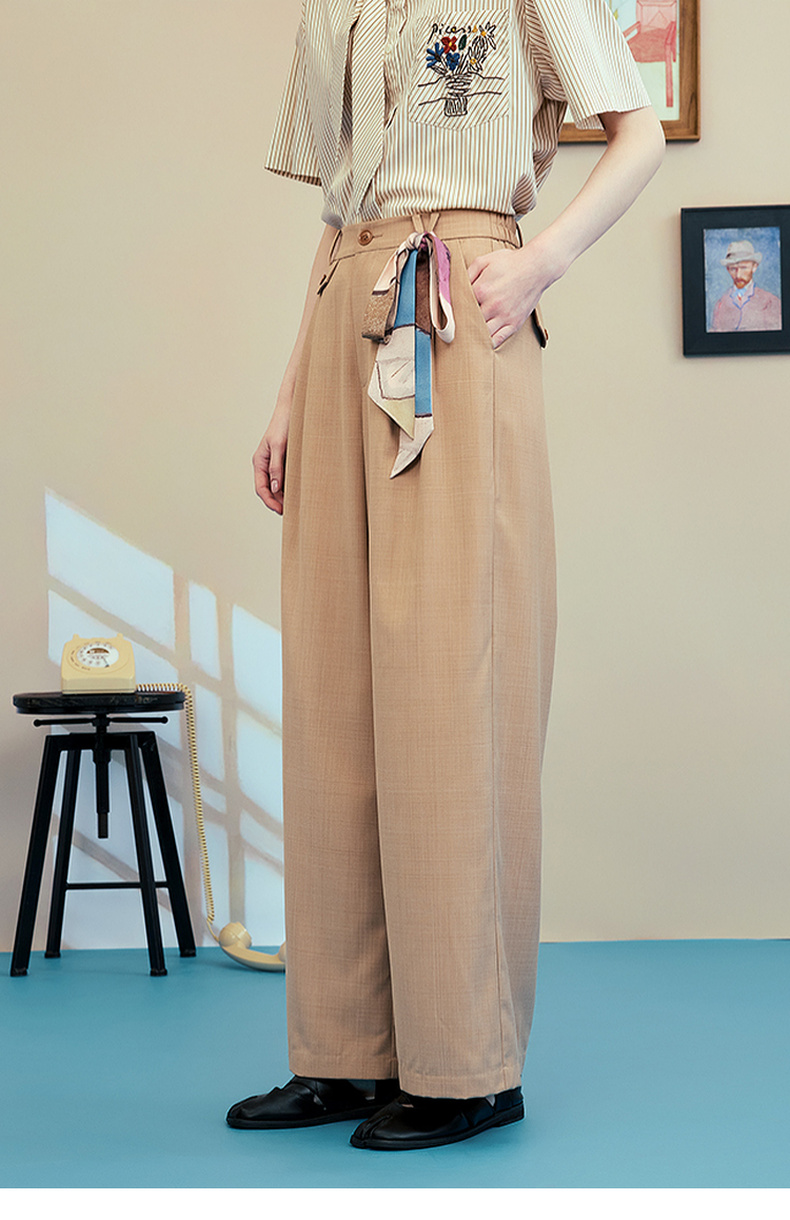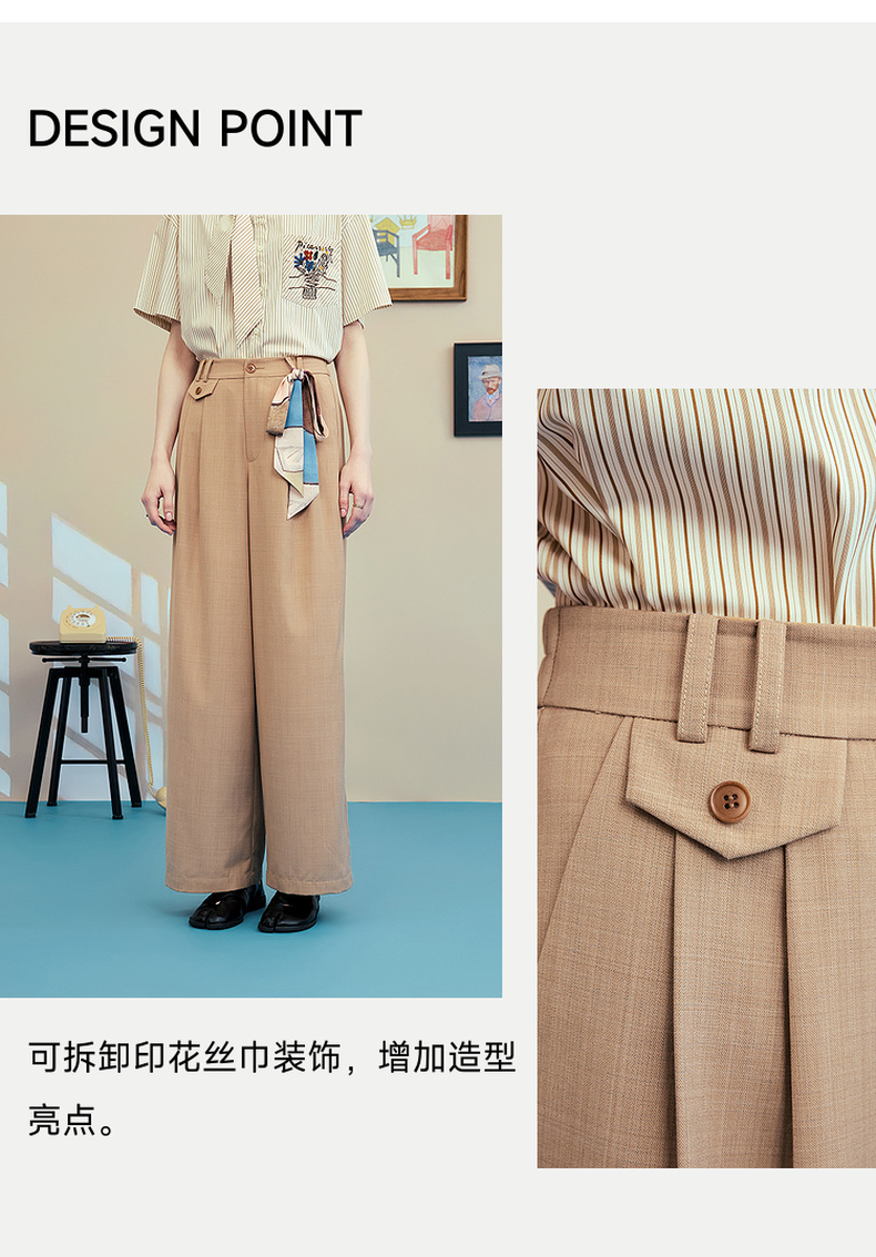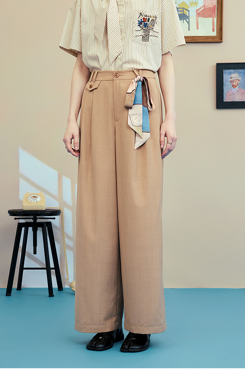 两三事 咖啡经纬 2025夏季新款简约印花丝巾装饰直筒休闲裤女