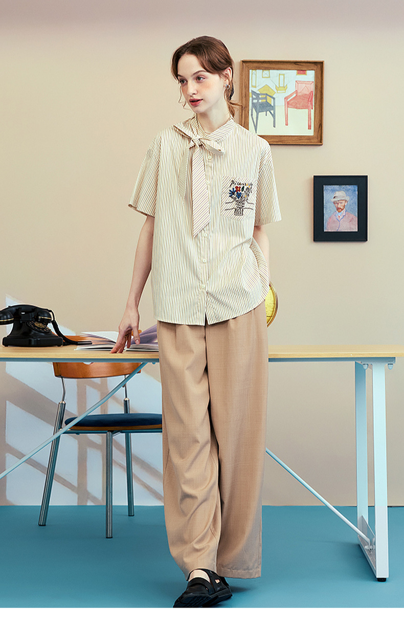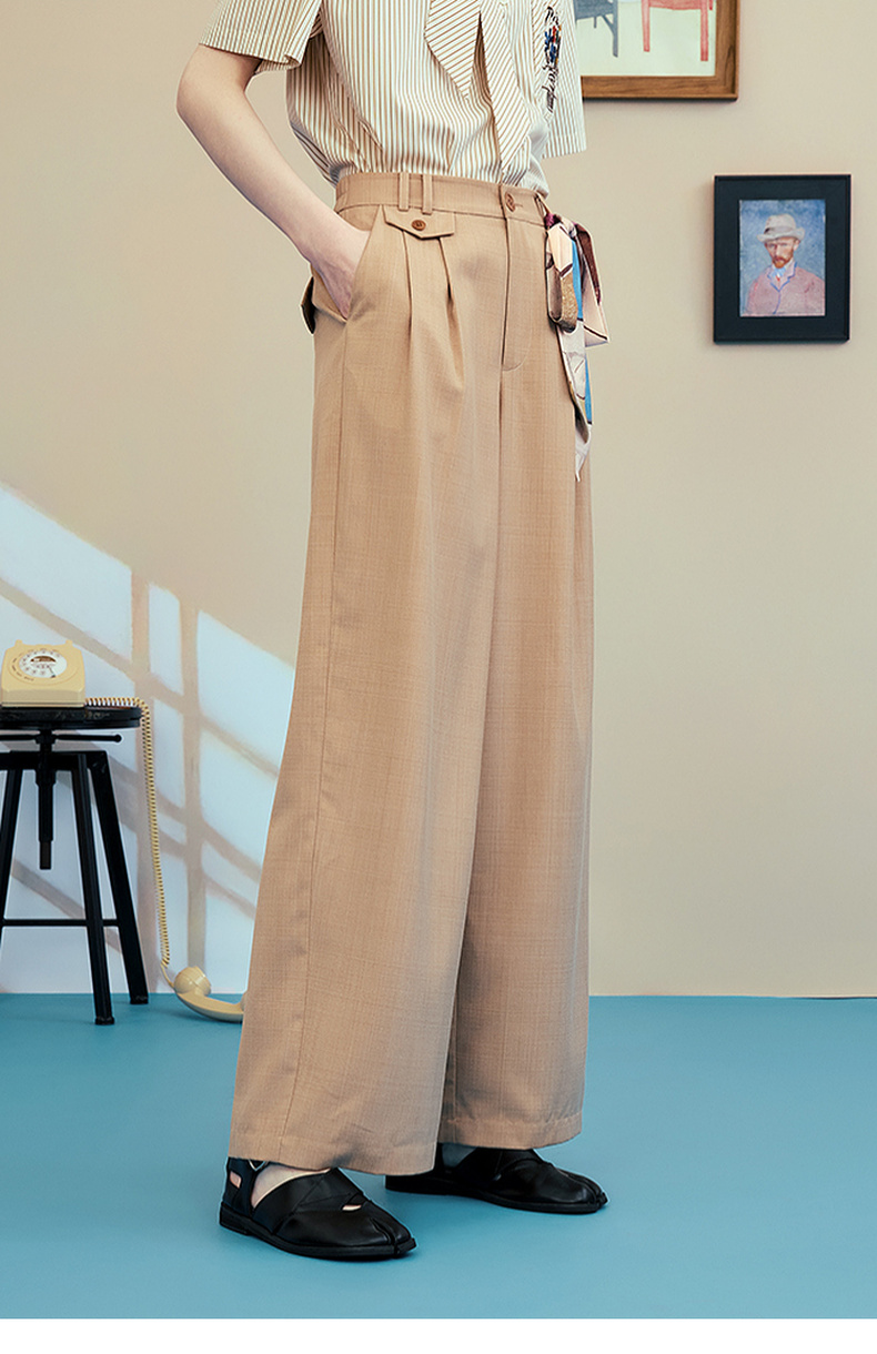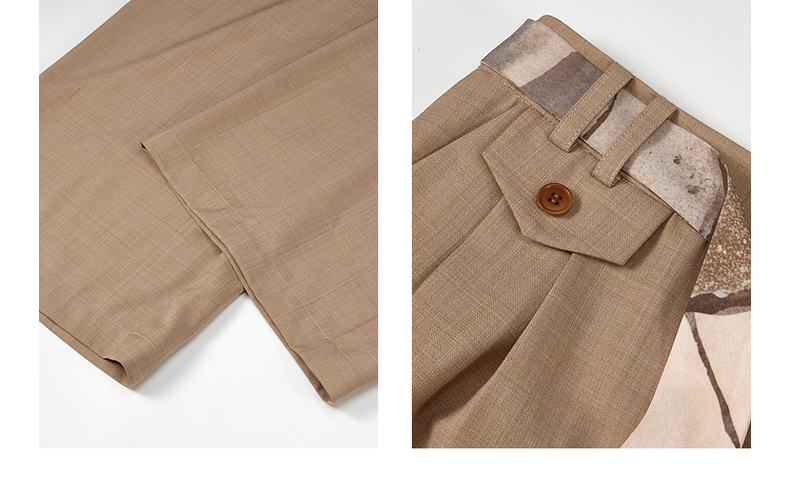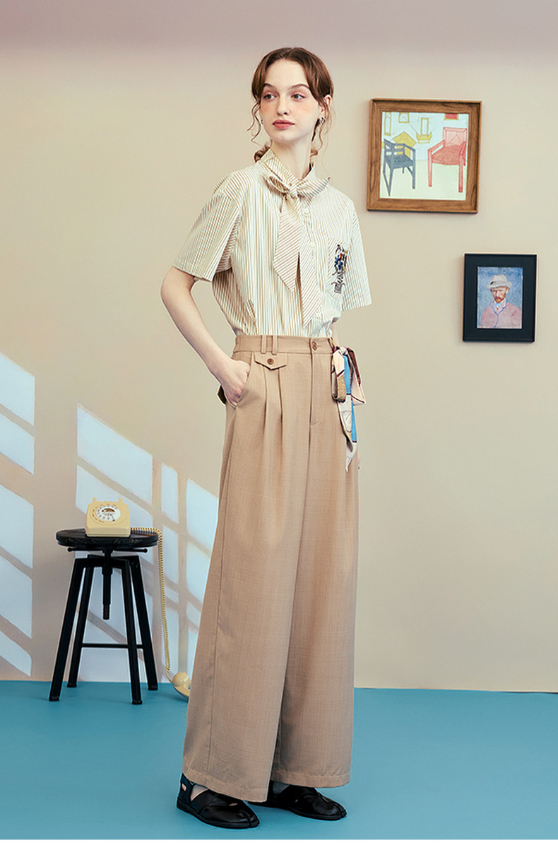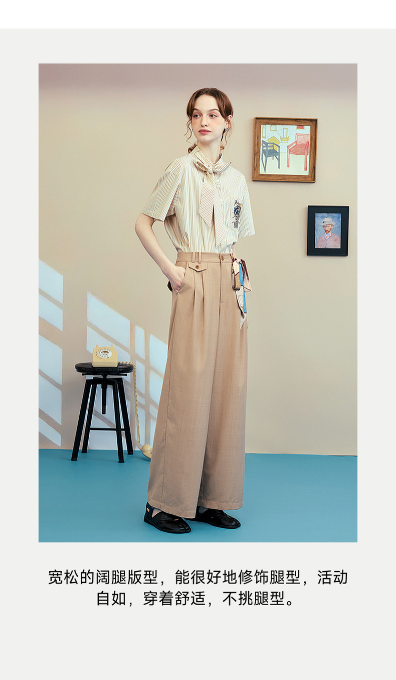 两三事 咖啡经纬 2025夏季新款简约印花丝巾装饰直筒休闲裤女