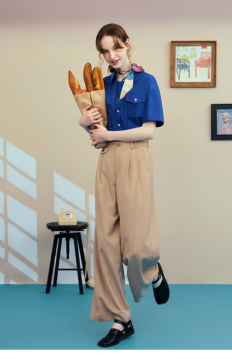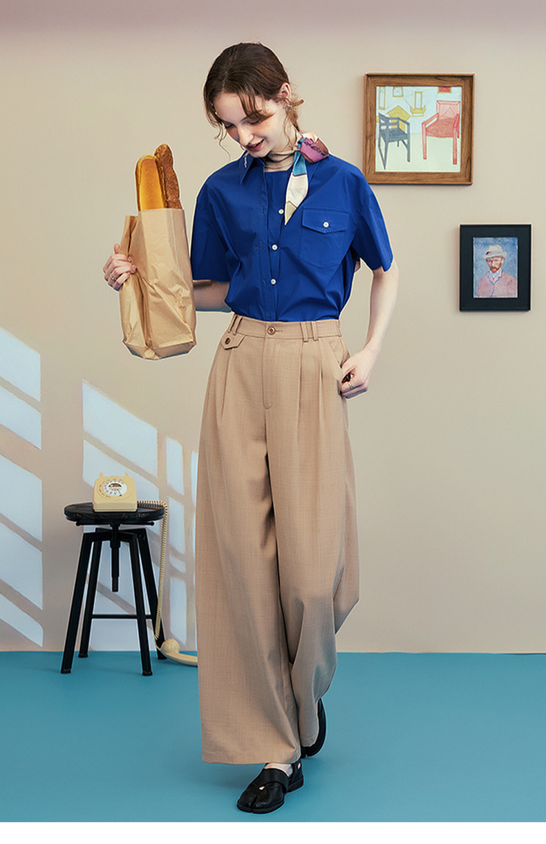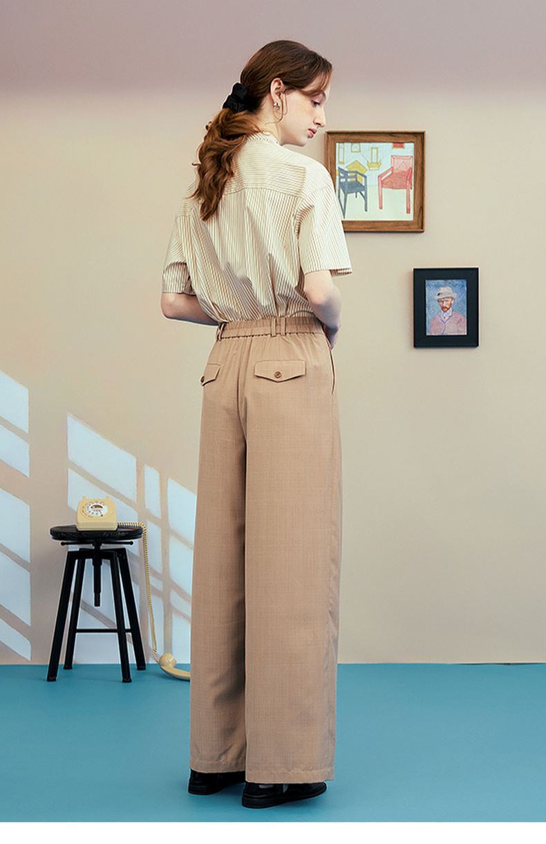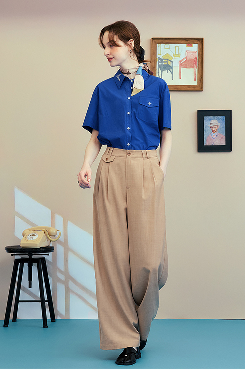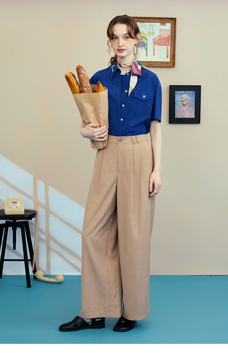 两三事 咖啡经纬 2025夏季新款简约印花丝巾装饰直筒休闲裤女