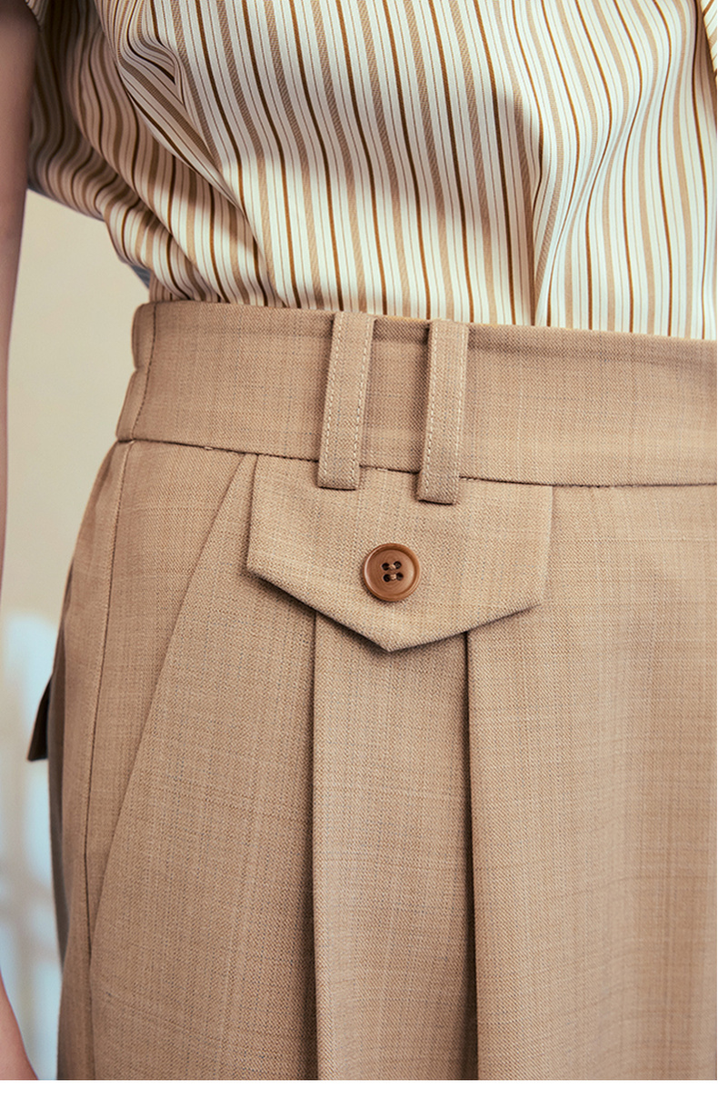 两三事 晚风正好 2024秋季新款时尚格子拼布高腰阔腿裤休闲裤女