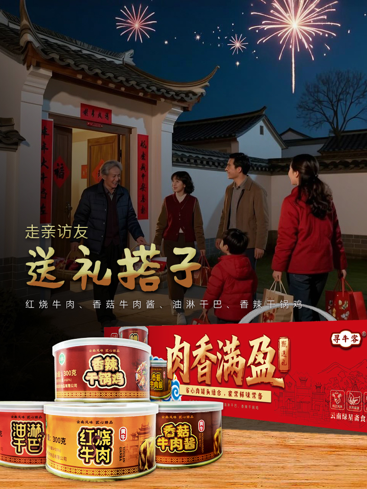 云南 绿星斋 清真牛肉罐头礼盒装 四种口味 300克/罐 4盒装