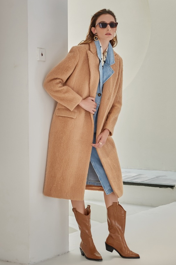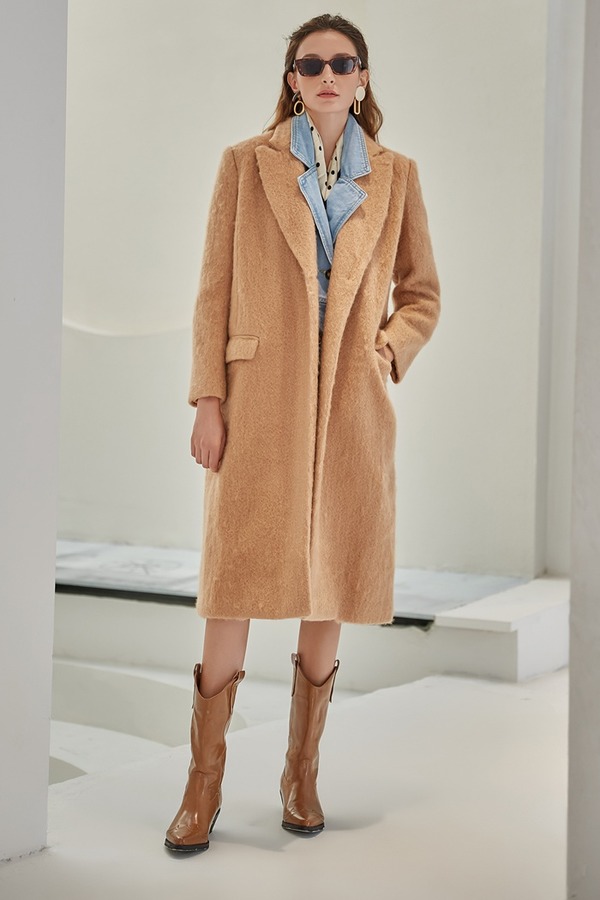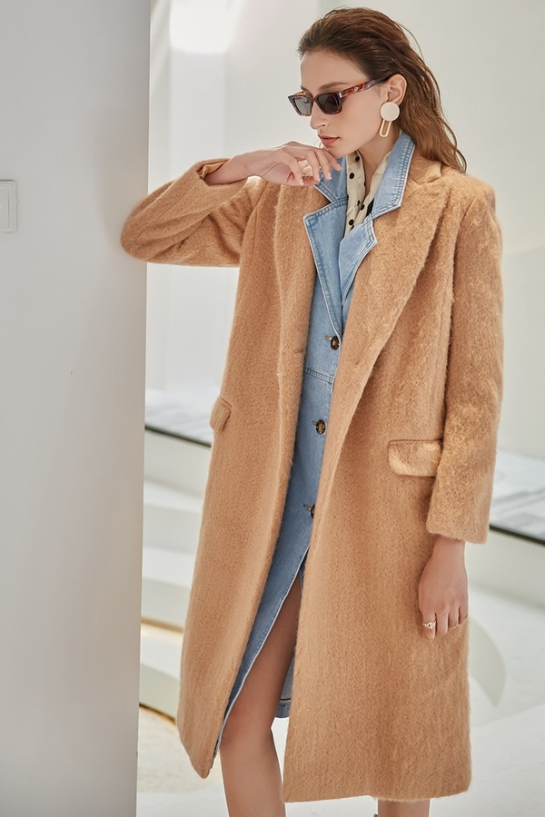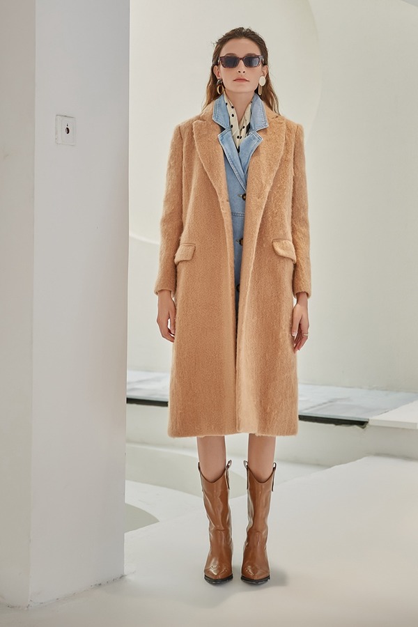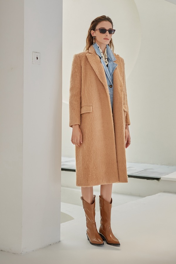 DAMO WANG/王大墨 驼色西装长大衣外套 14080