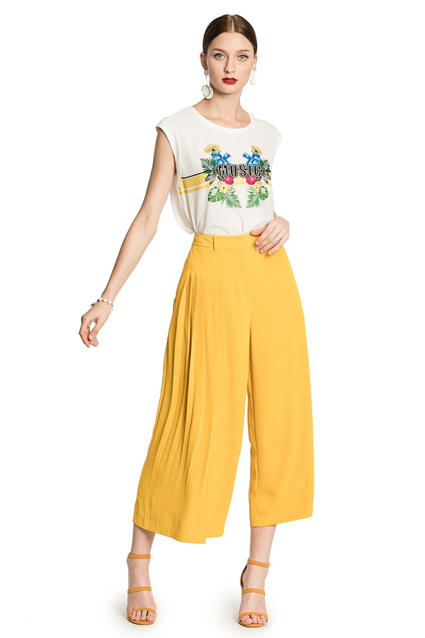 WEN&VI 米白色系带修身长裤 1105