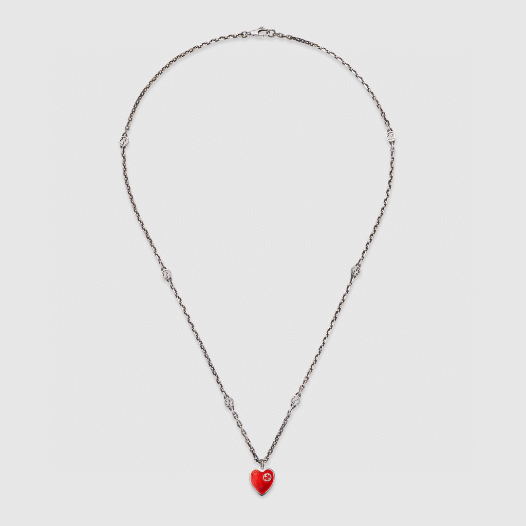 𝐆家互扣式双𝐆纯银珐琅爱心项链