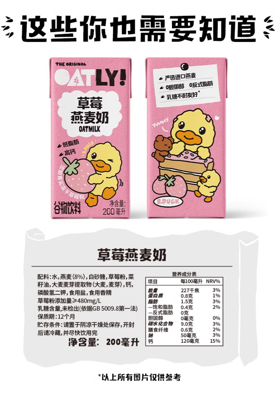 【1.16积分当钱花】OATLY噢麦力草莓味燕麦奶200ml*5