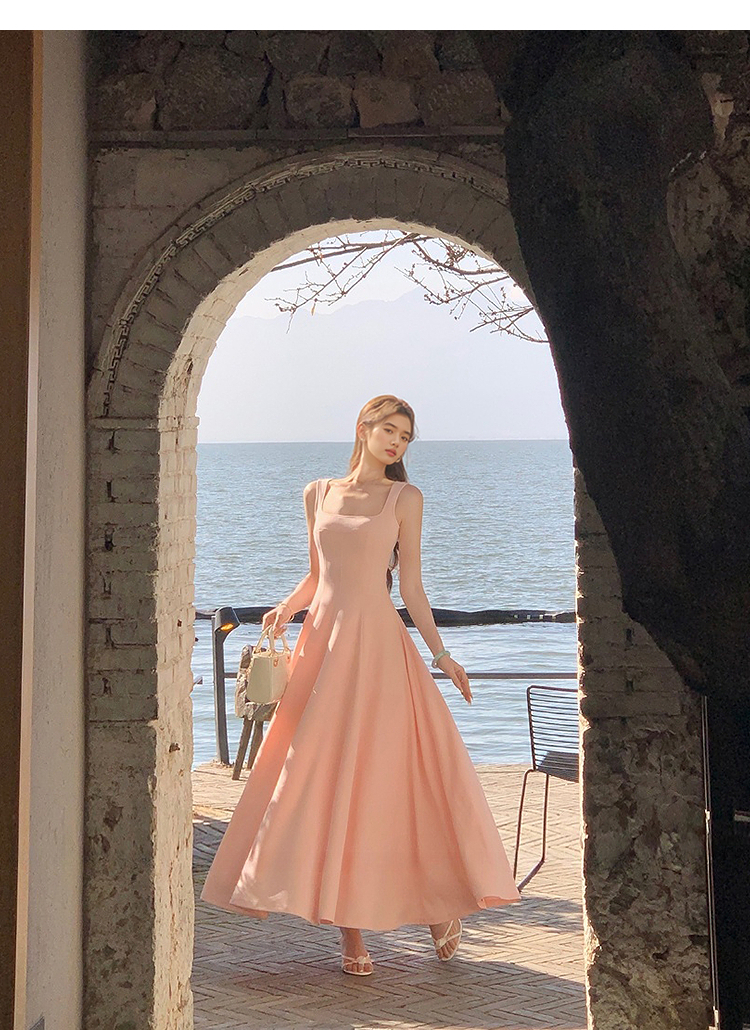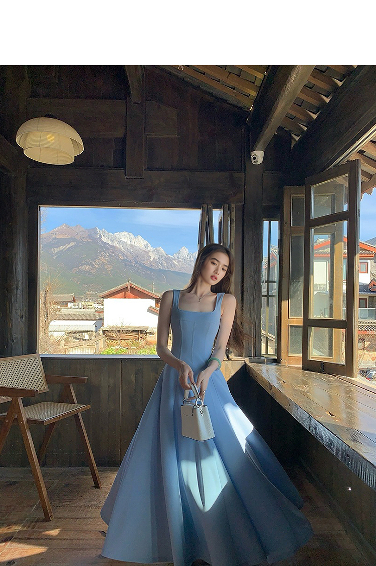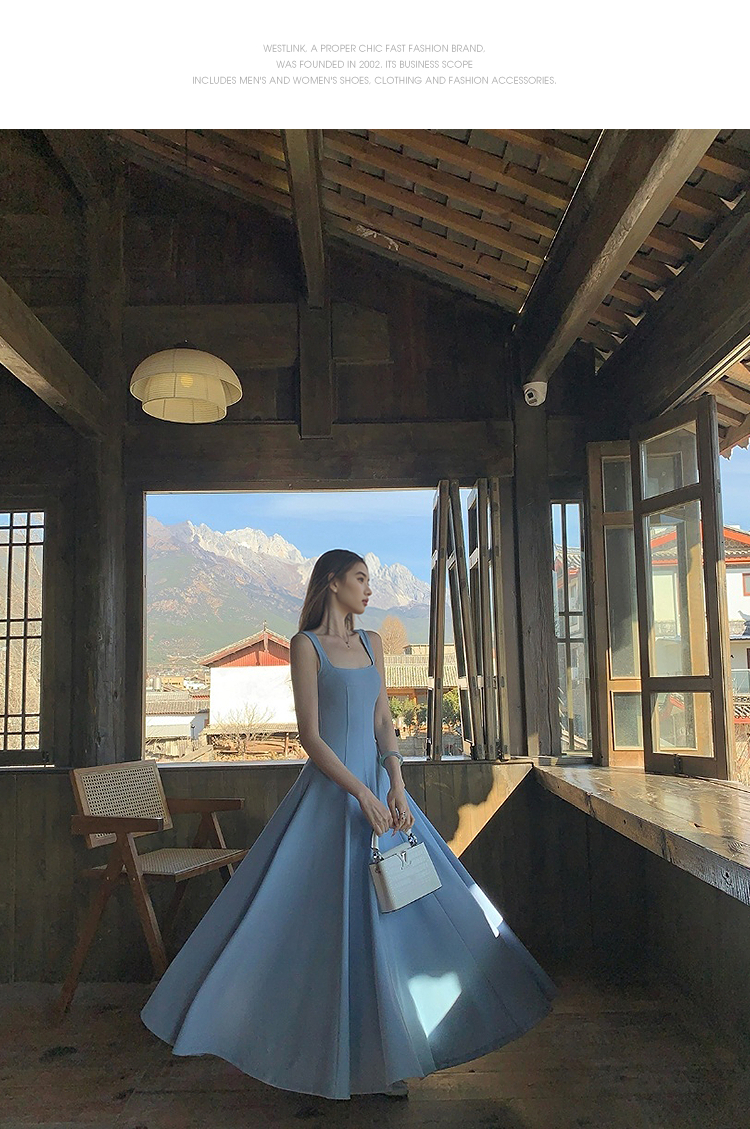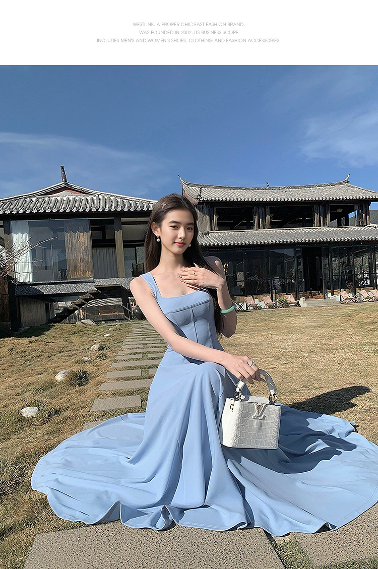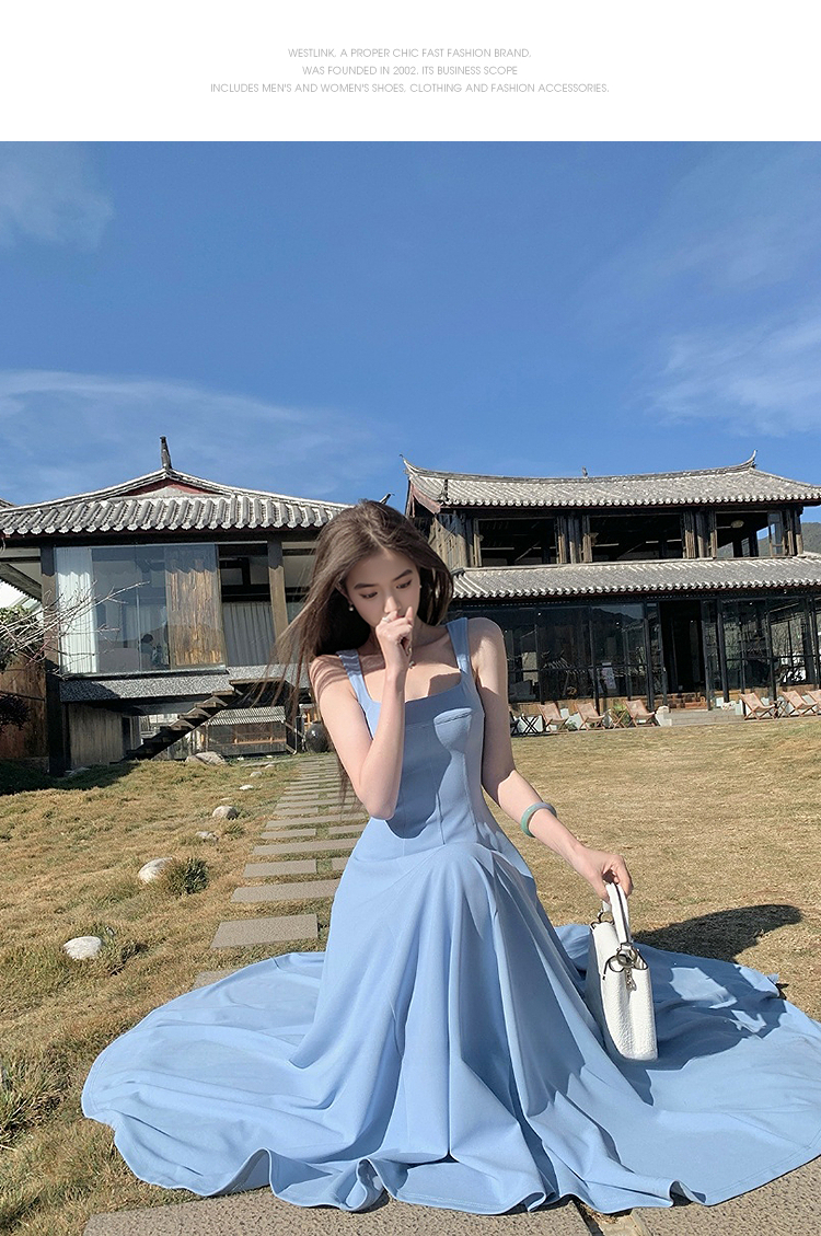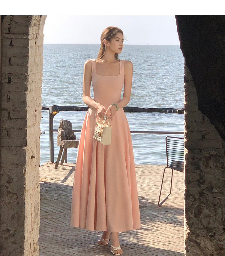 西遇方领吊带连衣裙女夏季新款法式海边度假风a字无袖裙子SS150329