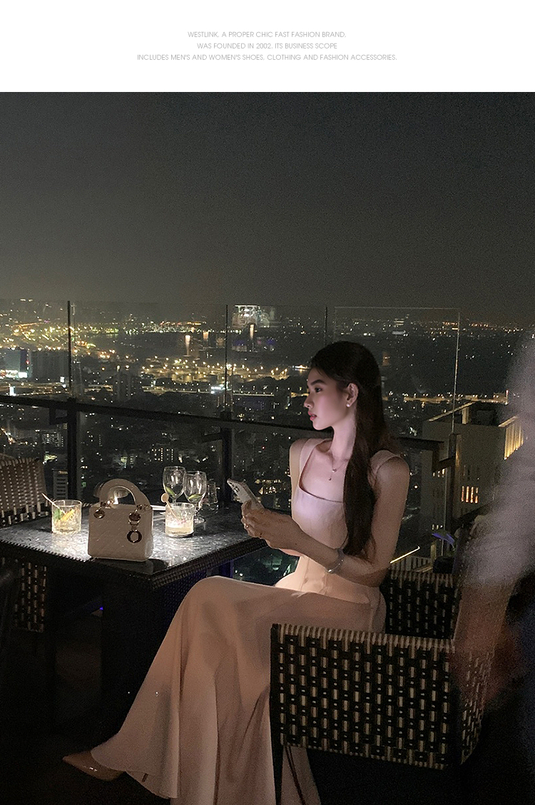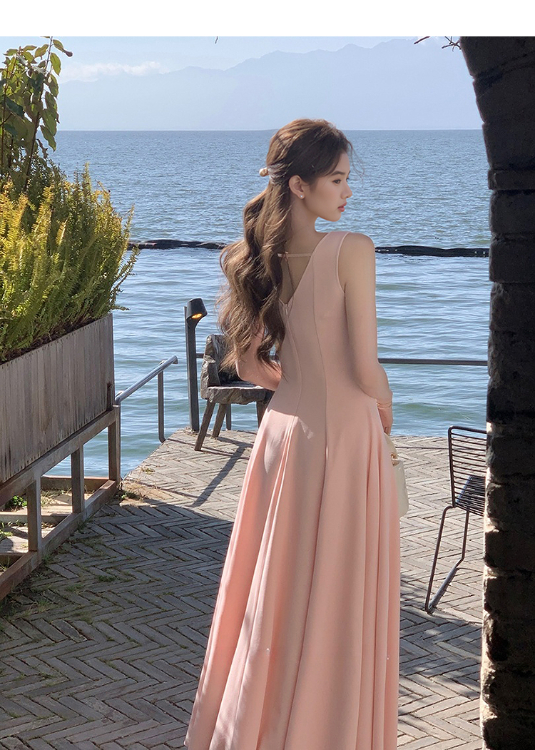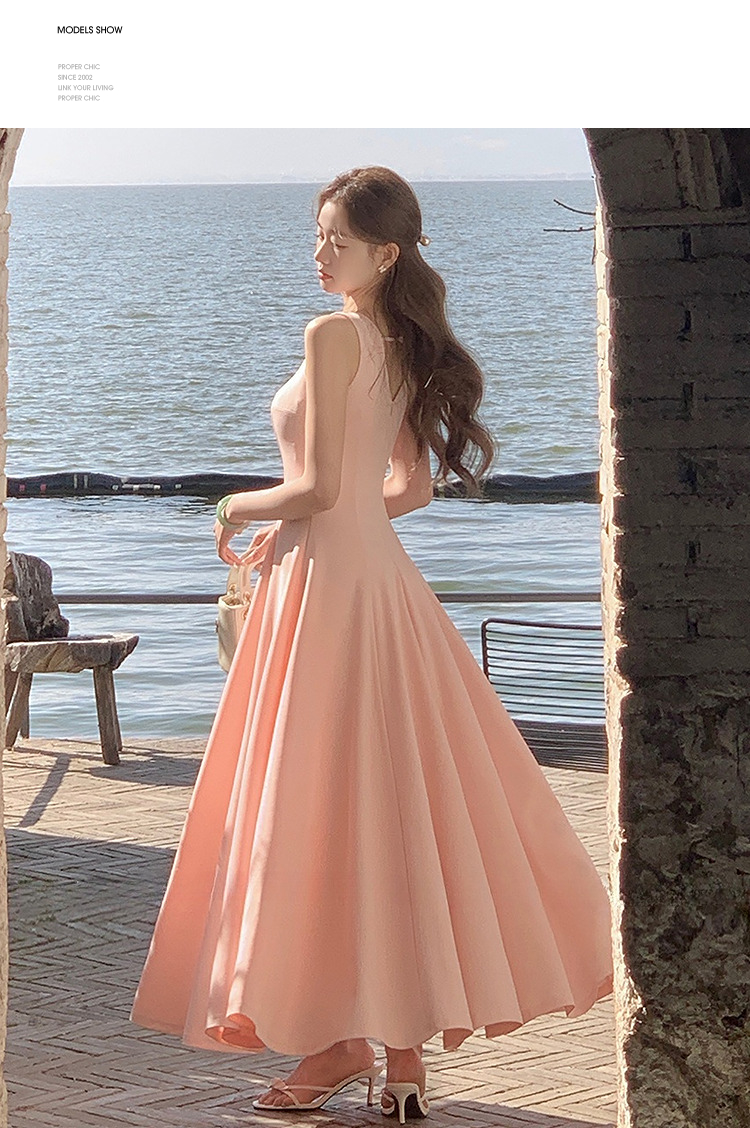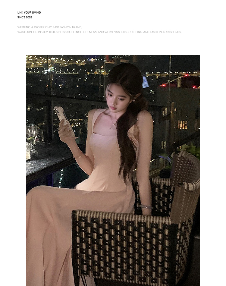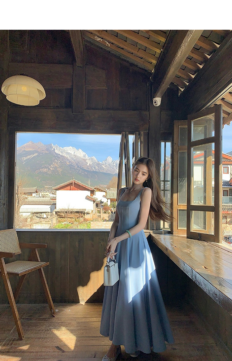 西遇方领吊带连衣裙女夏季新款法式海边度假风a字无袖裙子SS150329