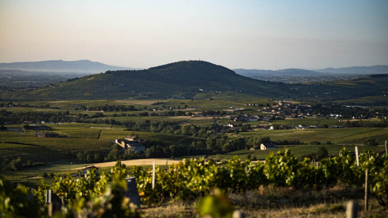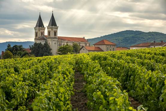 Régnié位于Régnié-Durette和Lantignié两个市镇之间,历史悠久,据说是罗马时期最早在博若莱种植葡萄的地方。中世纪的僧侣和18世纪运河的开通,进一步推动了Régnié葡萄酒的发展。1988年,Régnié正式被官方评为特级村。这里的风土以显著的花岗岩土壤和多样的坡度变化为特色,出产的葡萄酒以果香浓郁、单宁细腻而闻名。双尖塔教堂是Régnié的标志性地标,见证了这片土地的悠久历史与独特魅力。