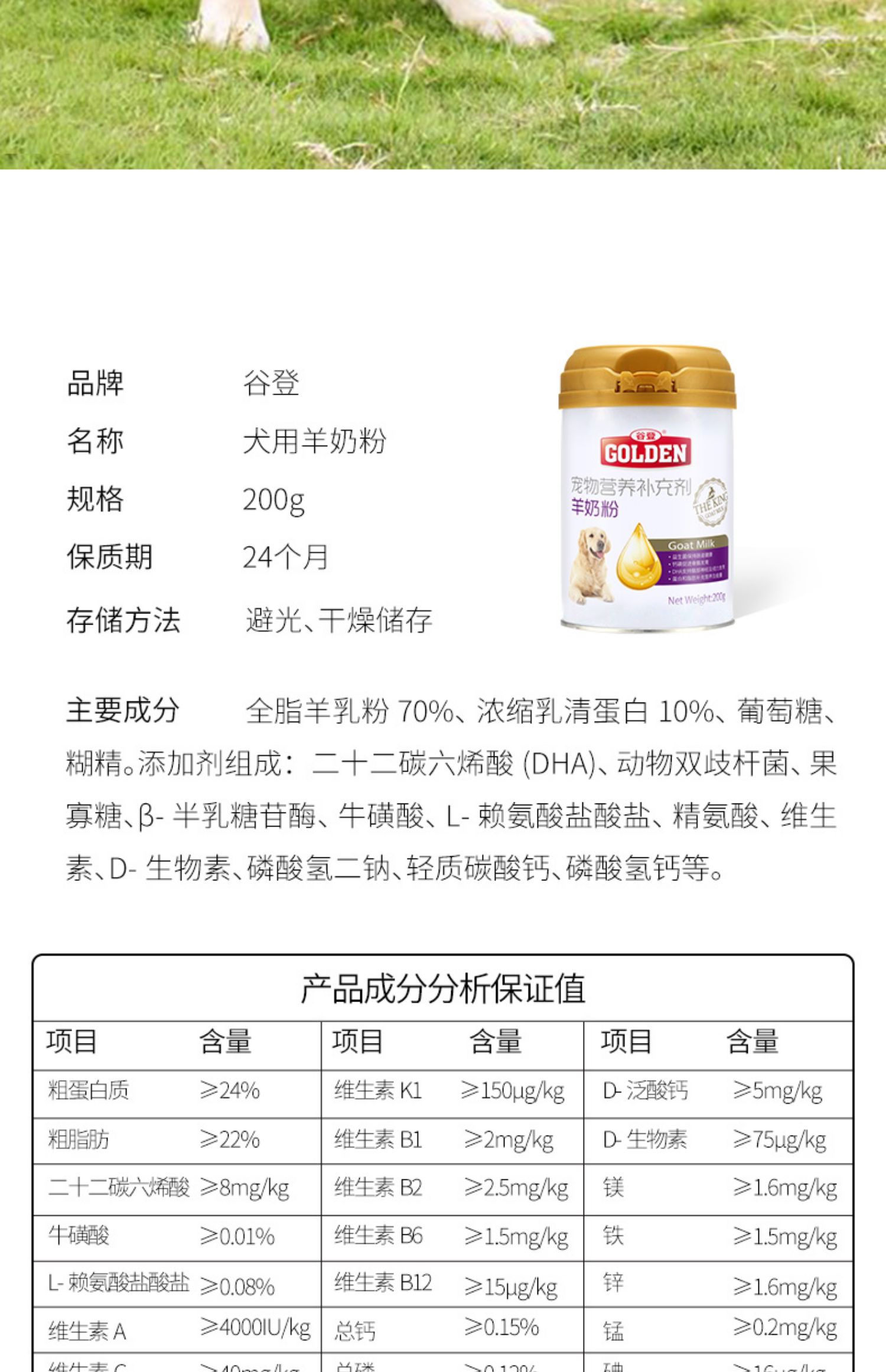 谷登 犬用羊奶粉200g(再送试吃50g)狗狗羊奶粉 幼犬孕犬成犬宠物营养品