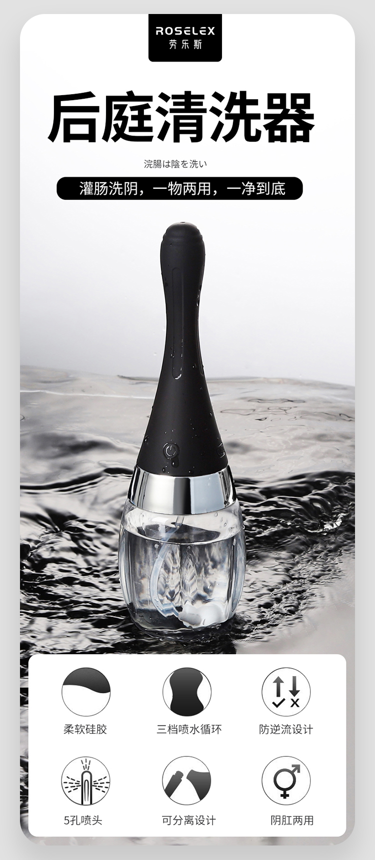 Roselex电动灌肠器 自动出水清洁后庭