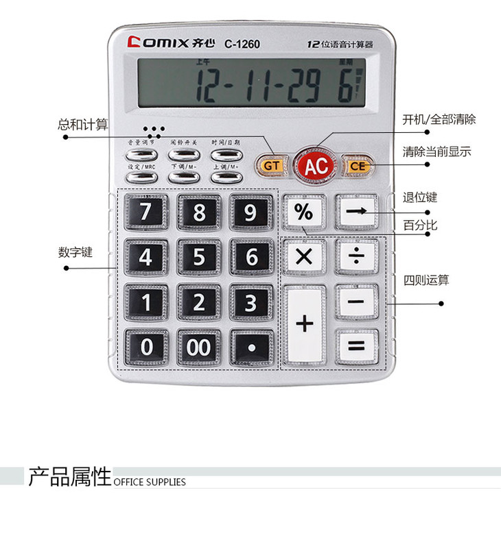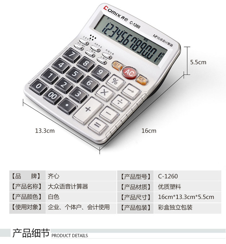 齐心计算器C-1260语音