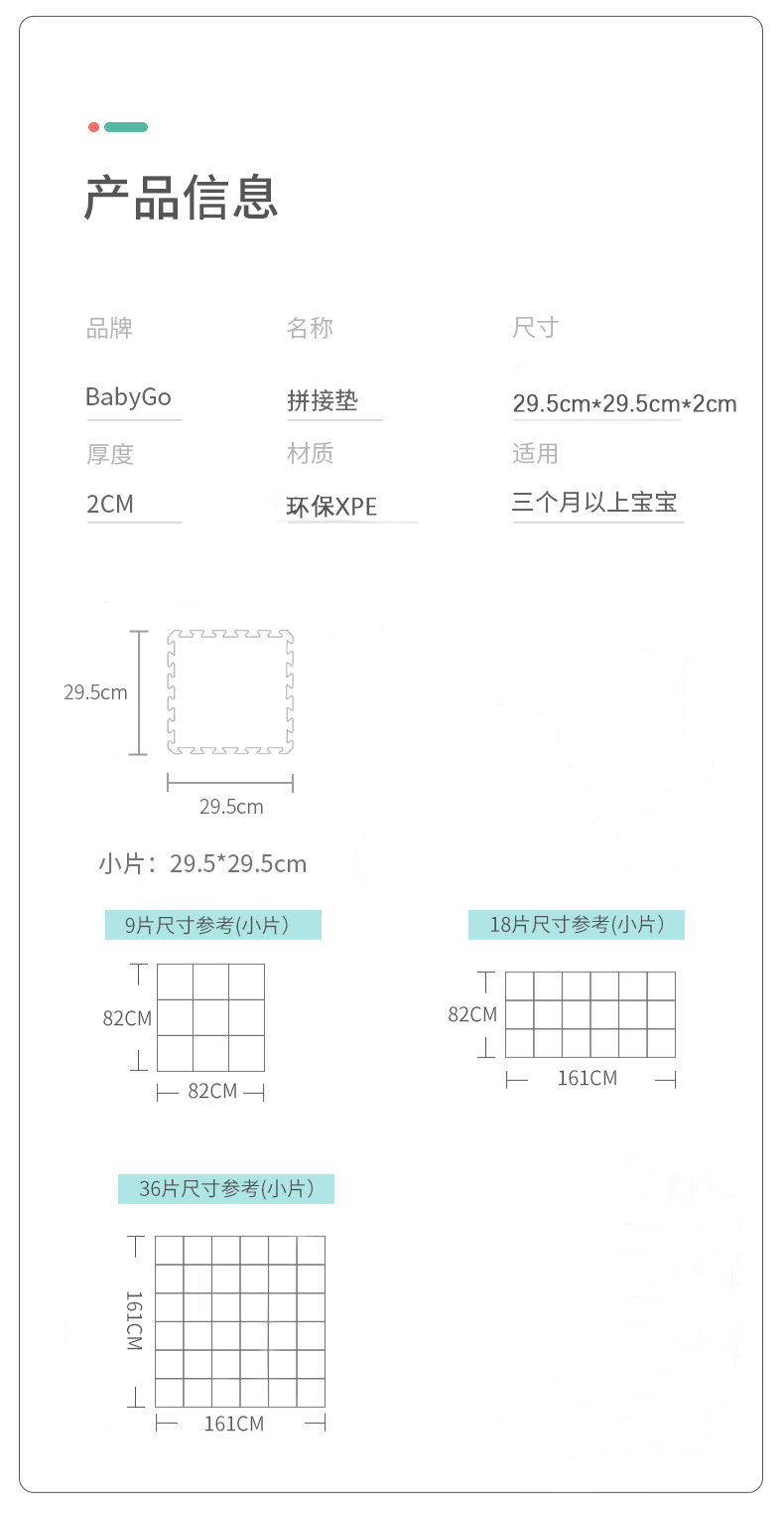【BG】BABYGO XPE小片拼接垫宝宝爬爬垫室内学步学爬行垫子