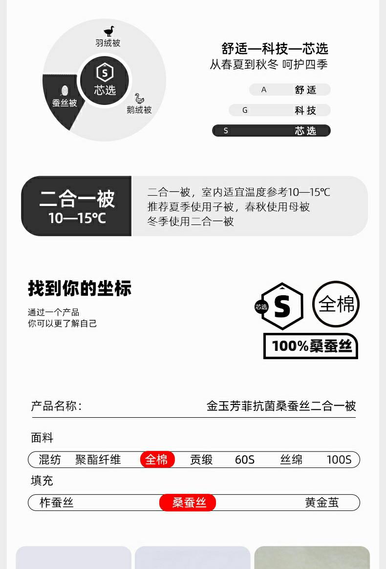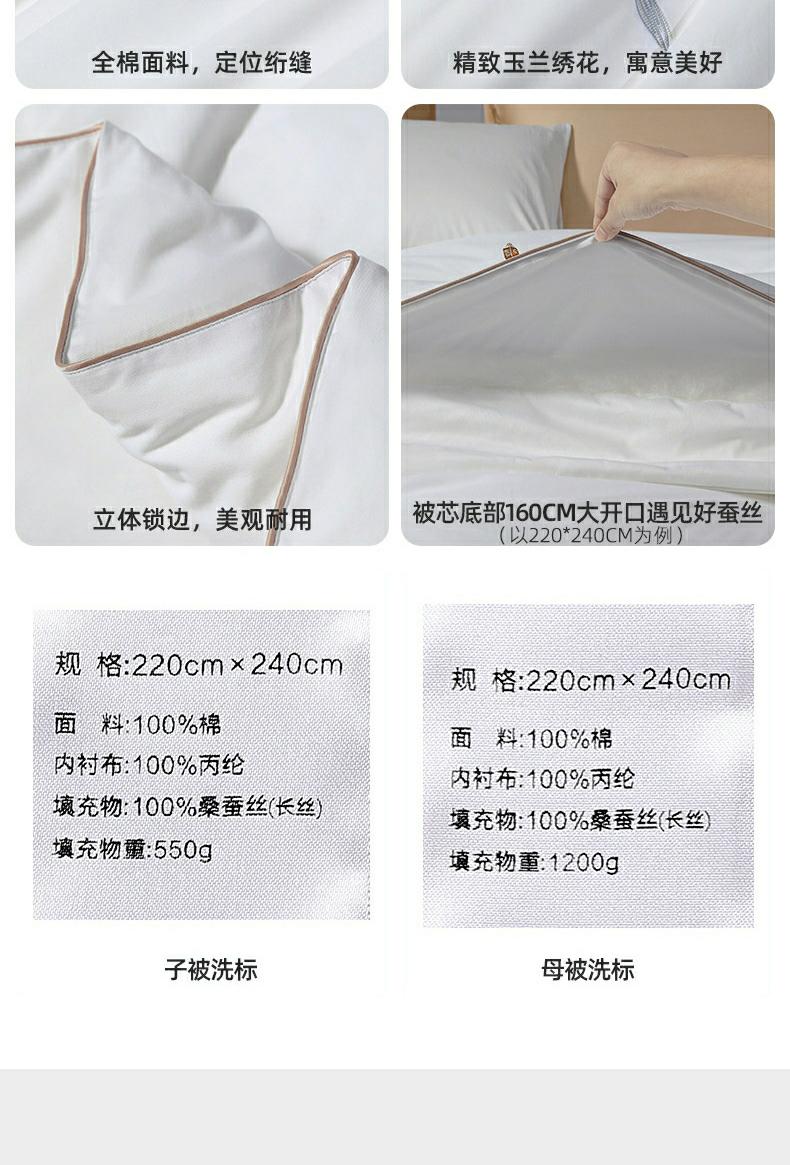 水星家纺金玉芳菲 桑蚕丝子母二合一被