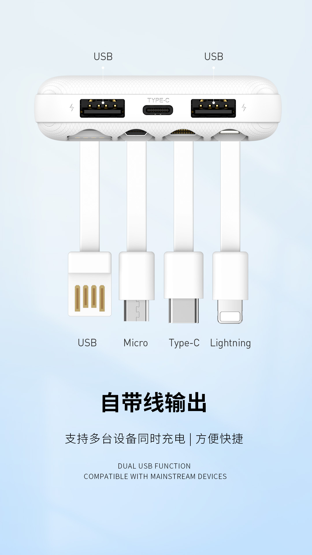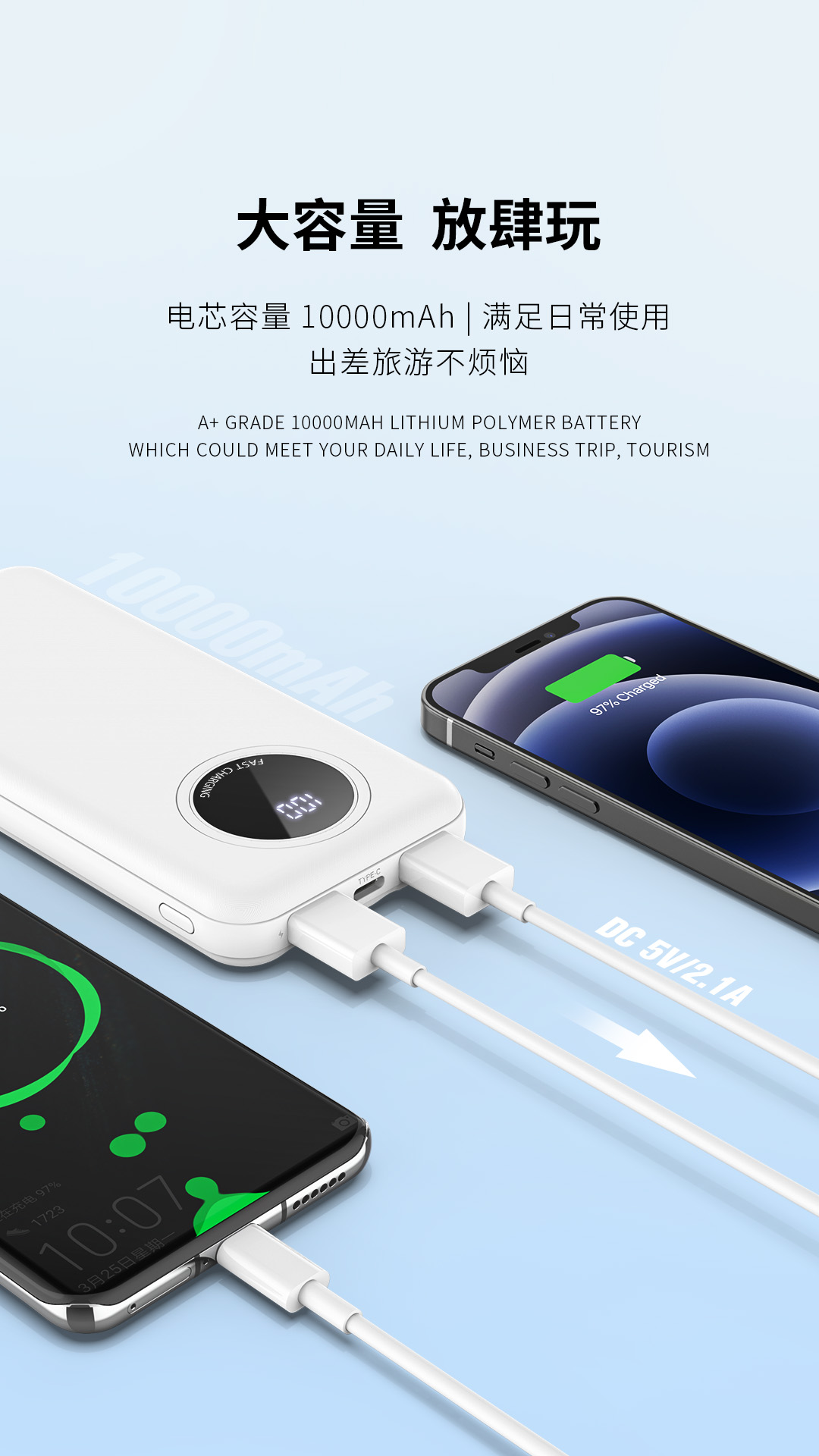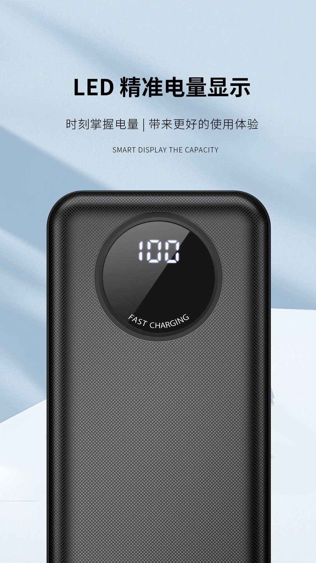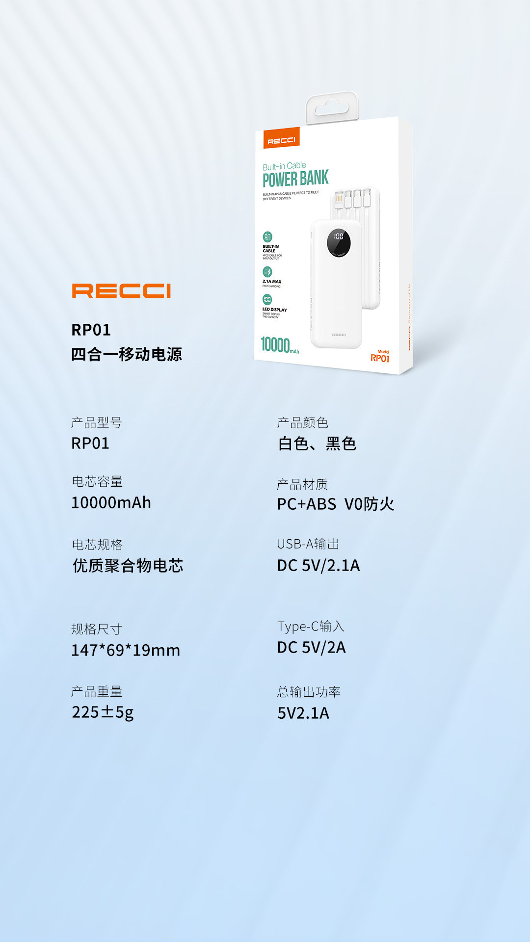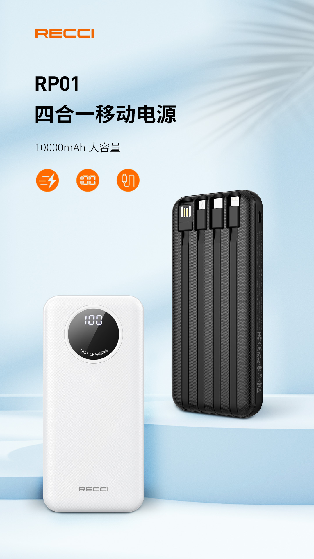 Recci锐思 充电宝超大容量10000毫安数显+自带四线RP01