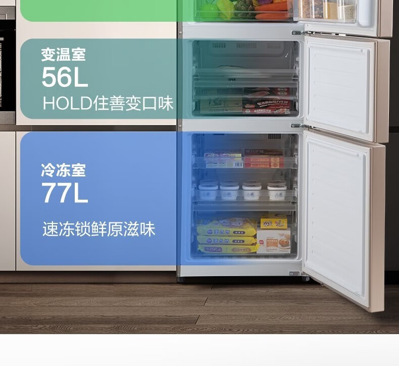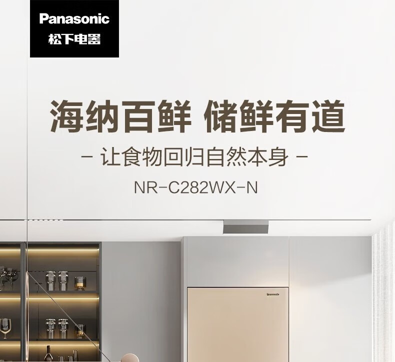 松下270升NR-C282WX-N摩砂金三门冰箱60cm超薄 -18~-5℃宽幅变温 银离子kang菌