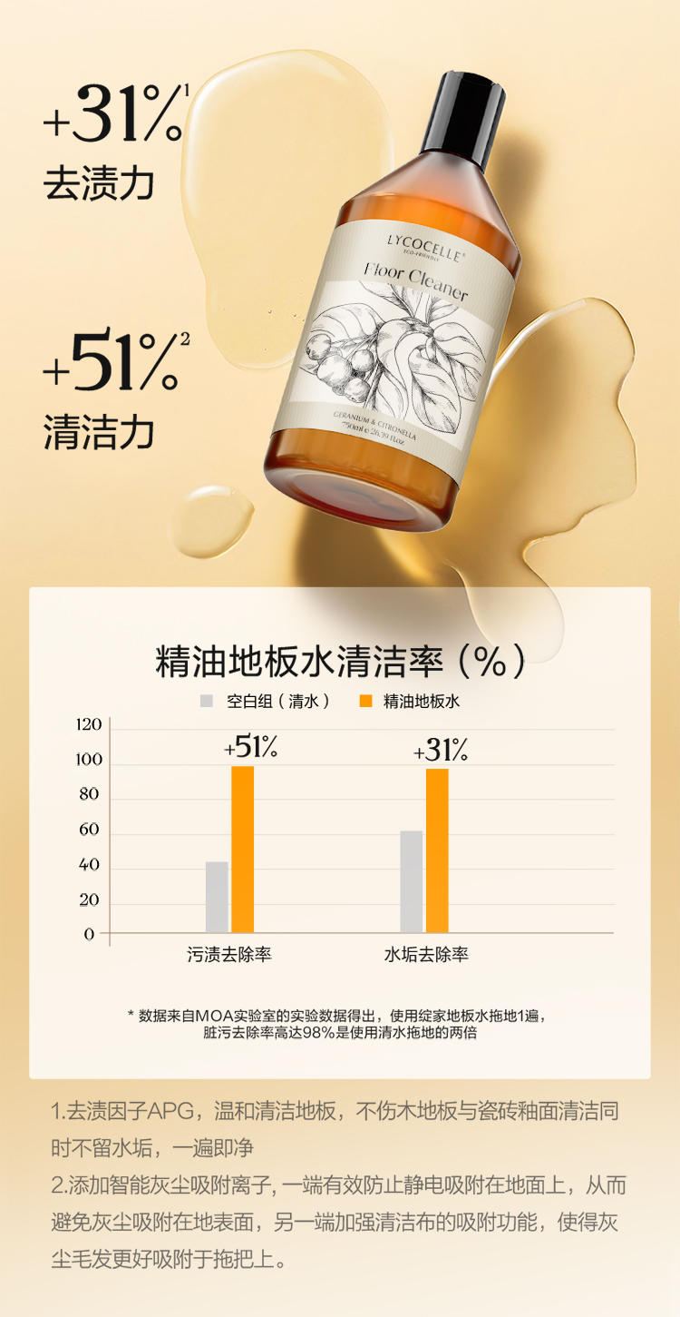【绽家】精油地板清洁剂地板瓷砖洗地机清洁液去污多效抑菌750ml