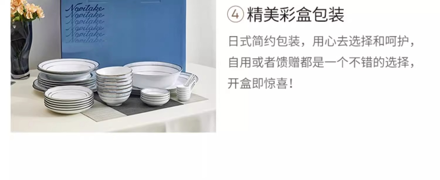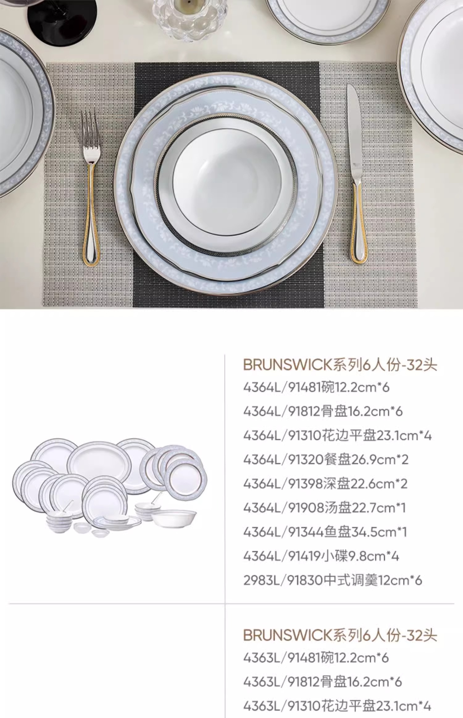 Noritake则武 BRUNSWICK日式田园风中餐餐具套装家用盘子6人份组则武32头中餐餐具套装