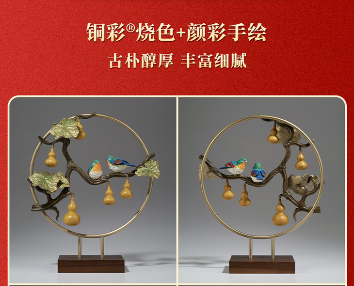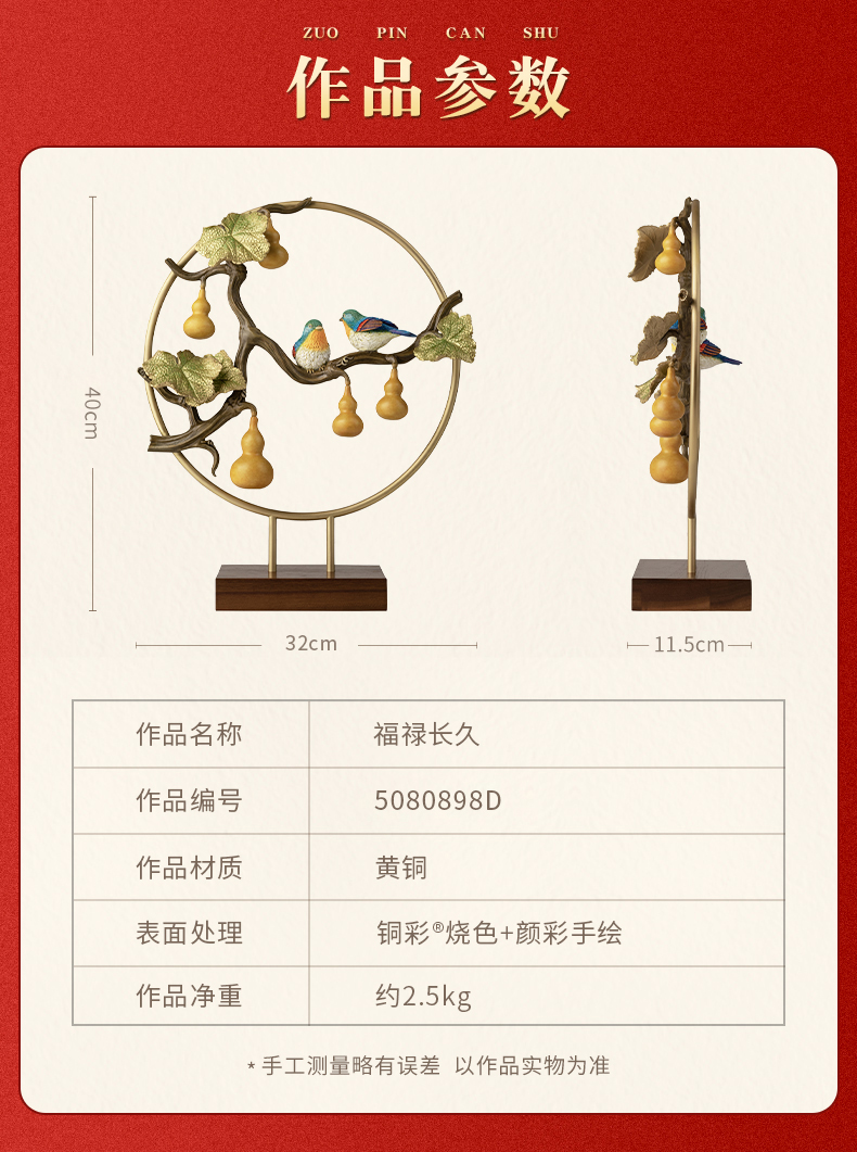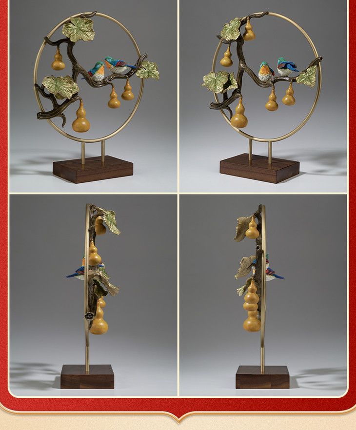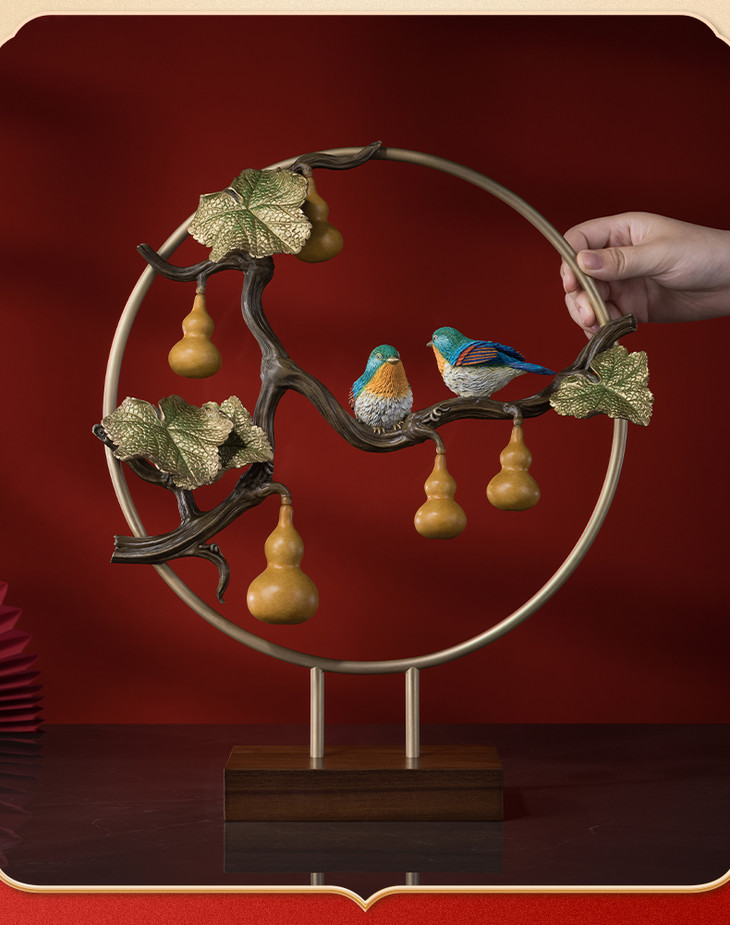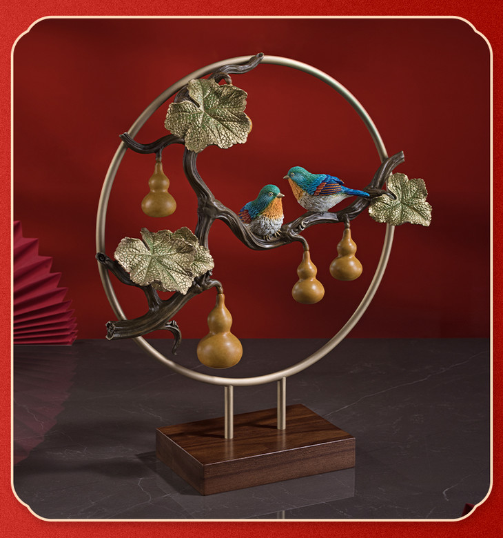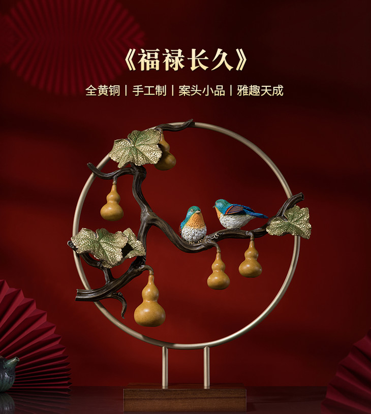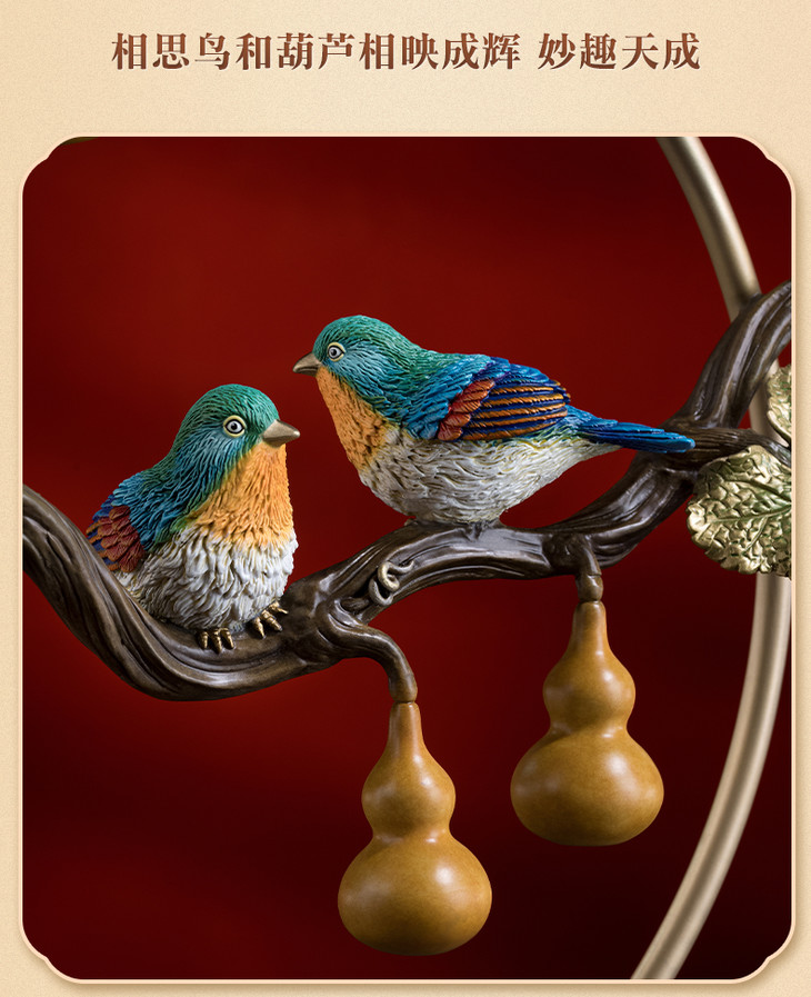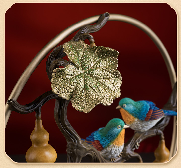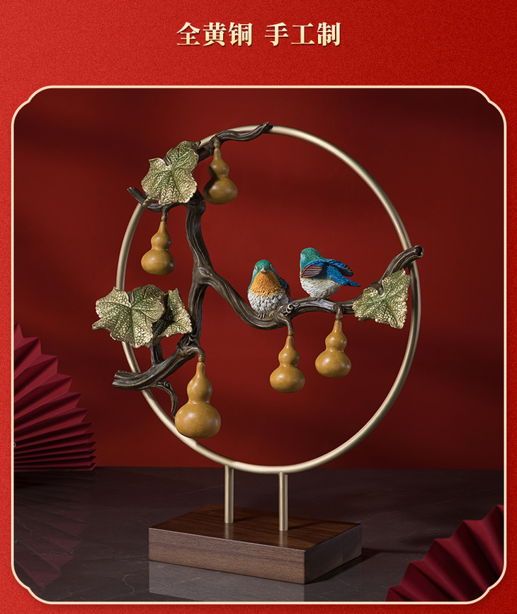 铜师傅 铜摆件《福禄长久》葫芦 相思鸟客厅桌面玄关乔迁新婚礼品