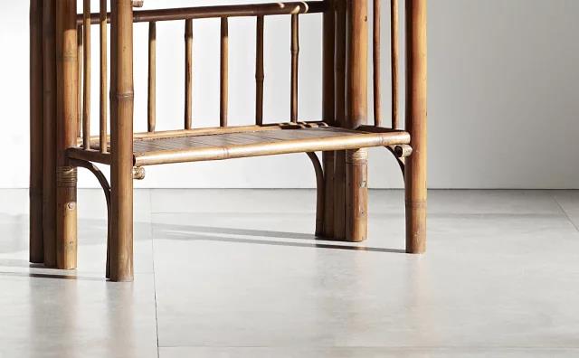 利用竹子本体的语言造型,创造了许多木质家具达不到的美的形式,比如木制家具碰到节疤就要尽量避开,但竹家具的竹节是造型变化的重要元素,也是使其坚固所要利用的。