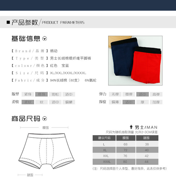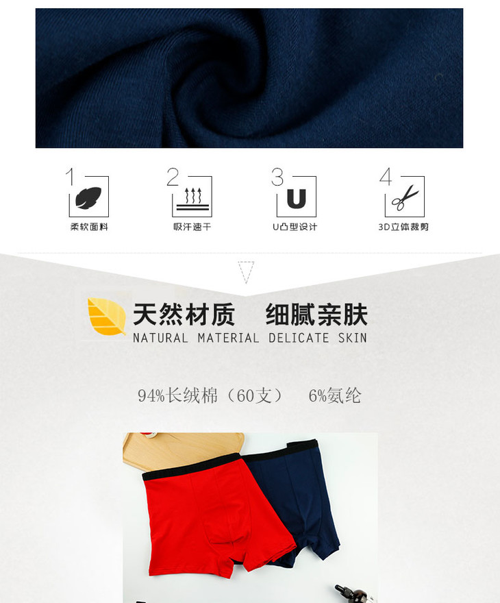 【可积分兑换9.9元】【L】男长绒棉(60支)银纤维平脚裤 透气贴身【CSM709】